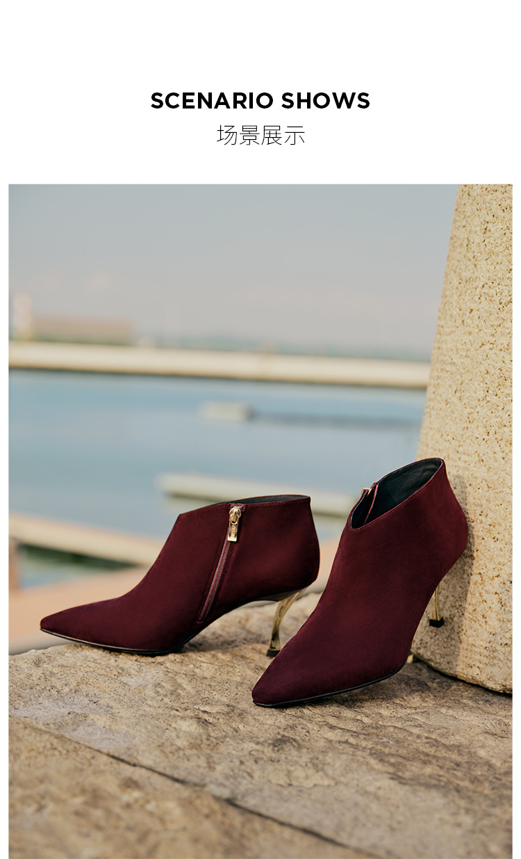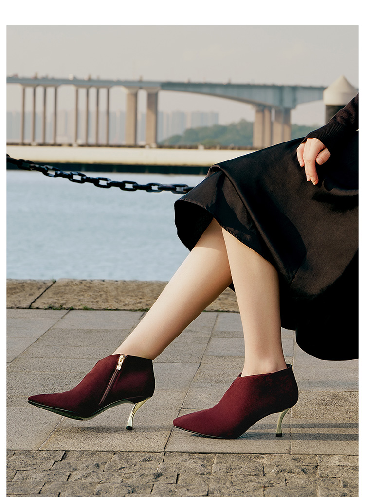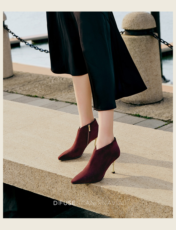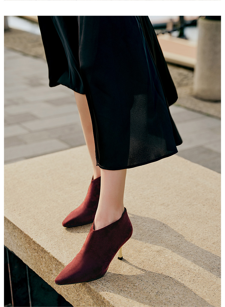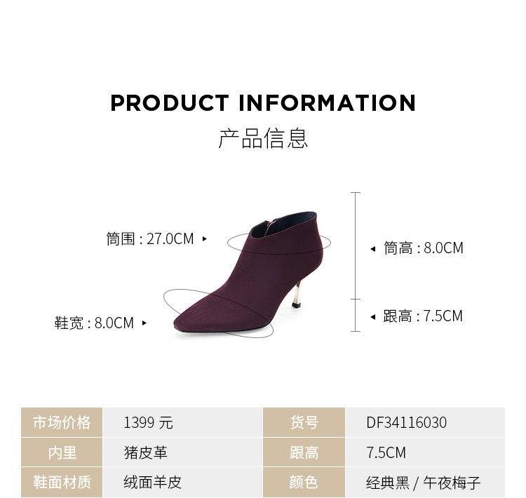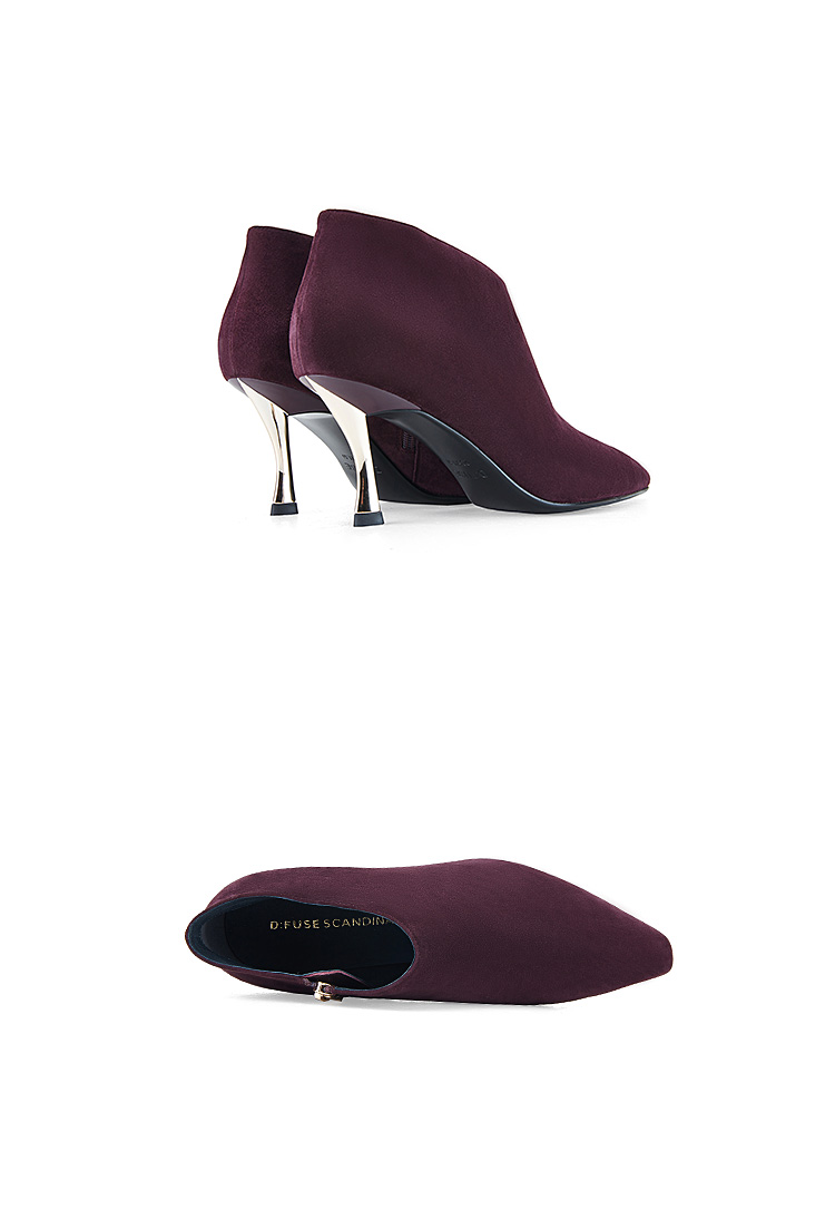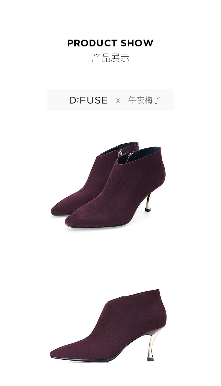 Dfuse迪芙斯秋冬新款羊反绒法式方头高跟踝靴短靴DF34116030