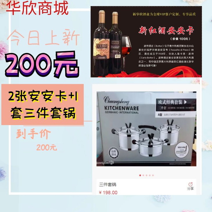 今日特惠-红酒安安卡(不含红酒)送三件套锅