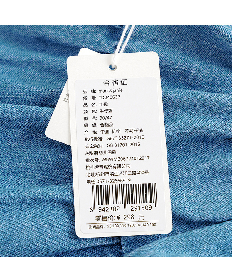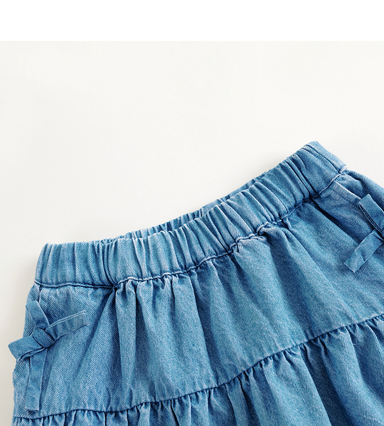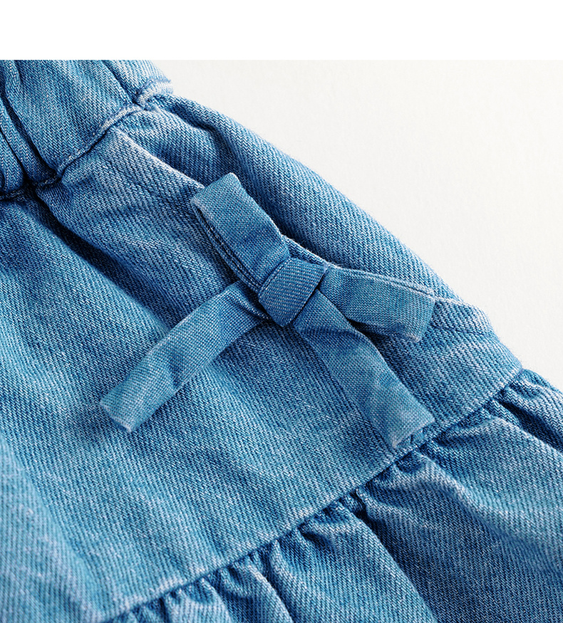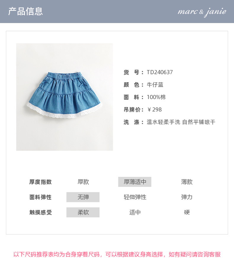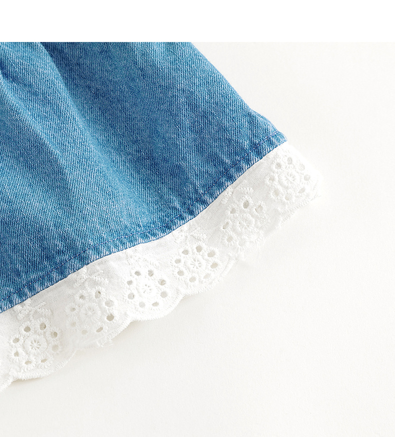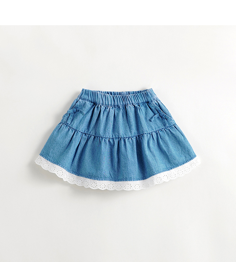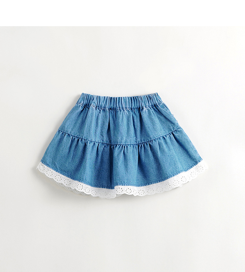 马克珍妮女童拼接镂空花边牛仔短裙半身裙儿童裙子夏装新款240637