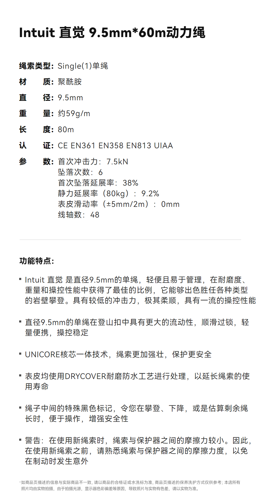 KAILAS凯乐石 户外运动 Intuit 直觉 9.5mm*60m动力绳 ER104A【Z】