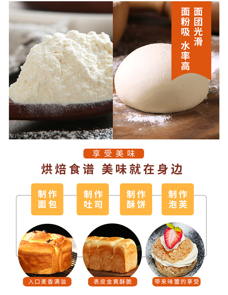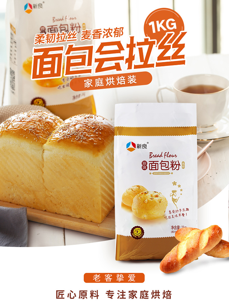 新良原味面包粉 高筋面粉 烘焙原料 披萨粉烘焙原料 1kg原装