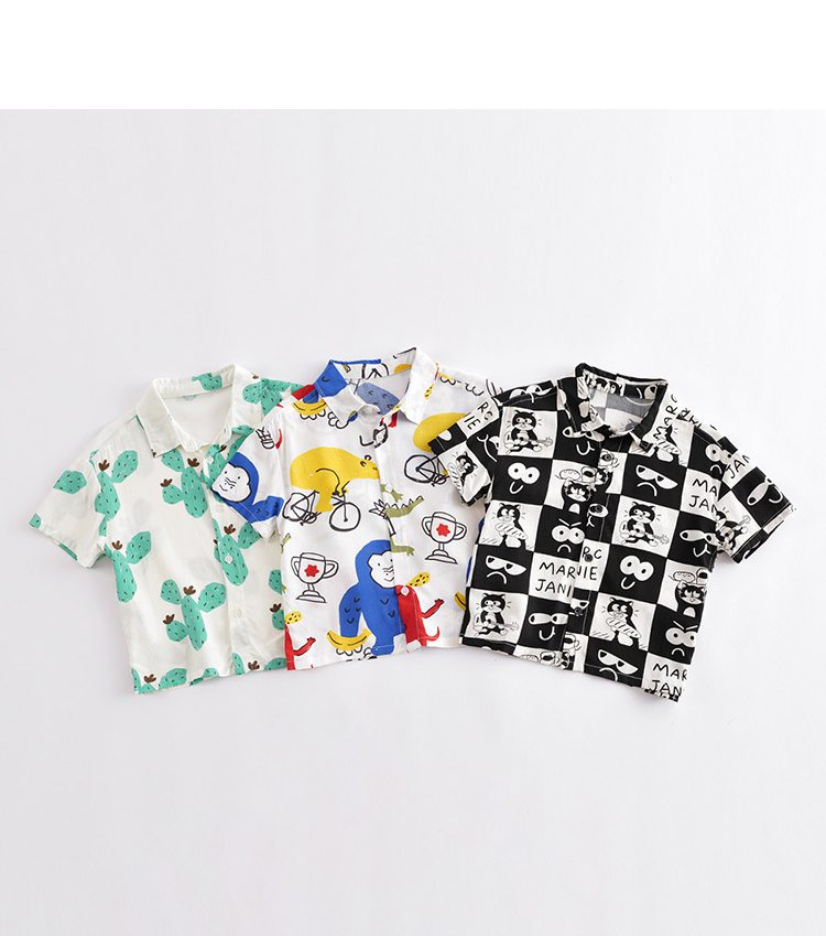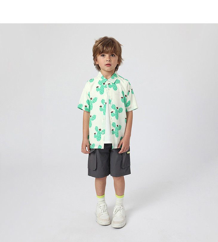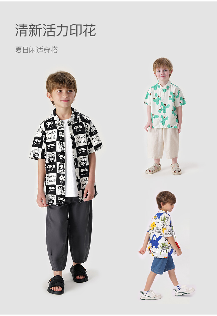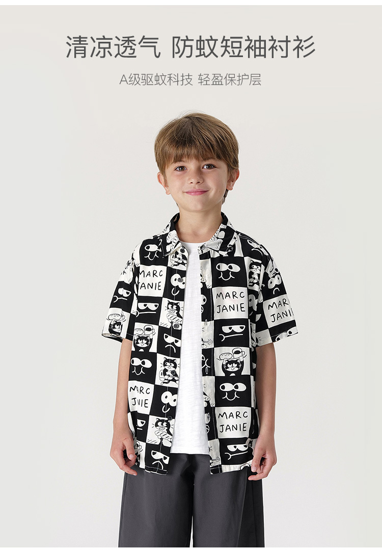 马克珍妮夏装新款 男童轻薄防蚊短袖衬衫 儿童上衣230566