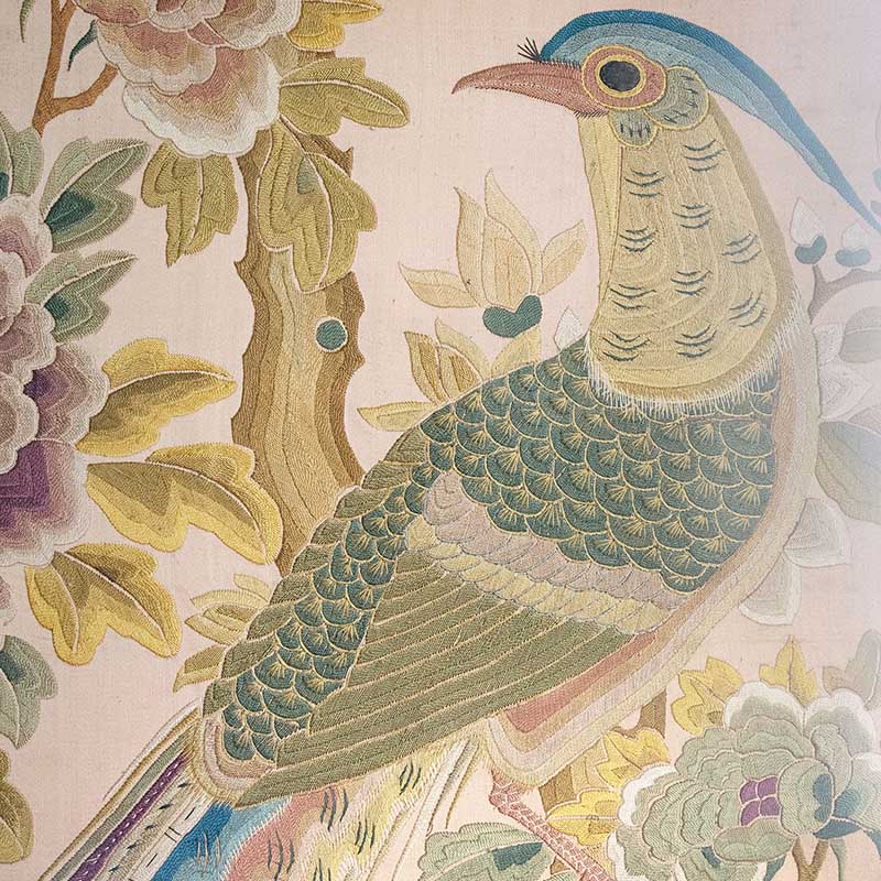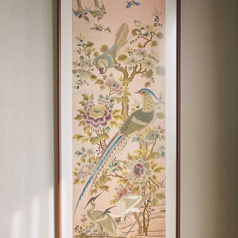 1900年代中国出品「富贵长寿」吉祥花鸟主题刺绣挂屏