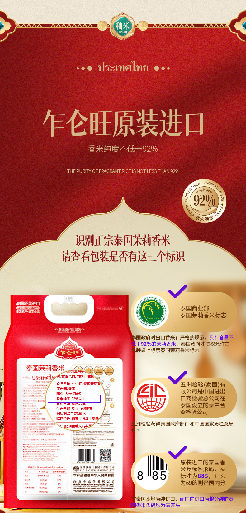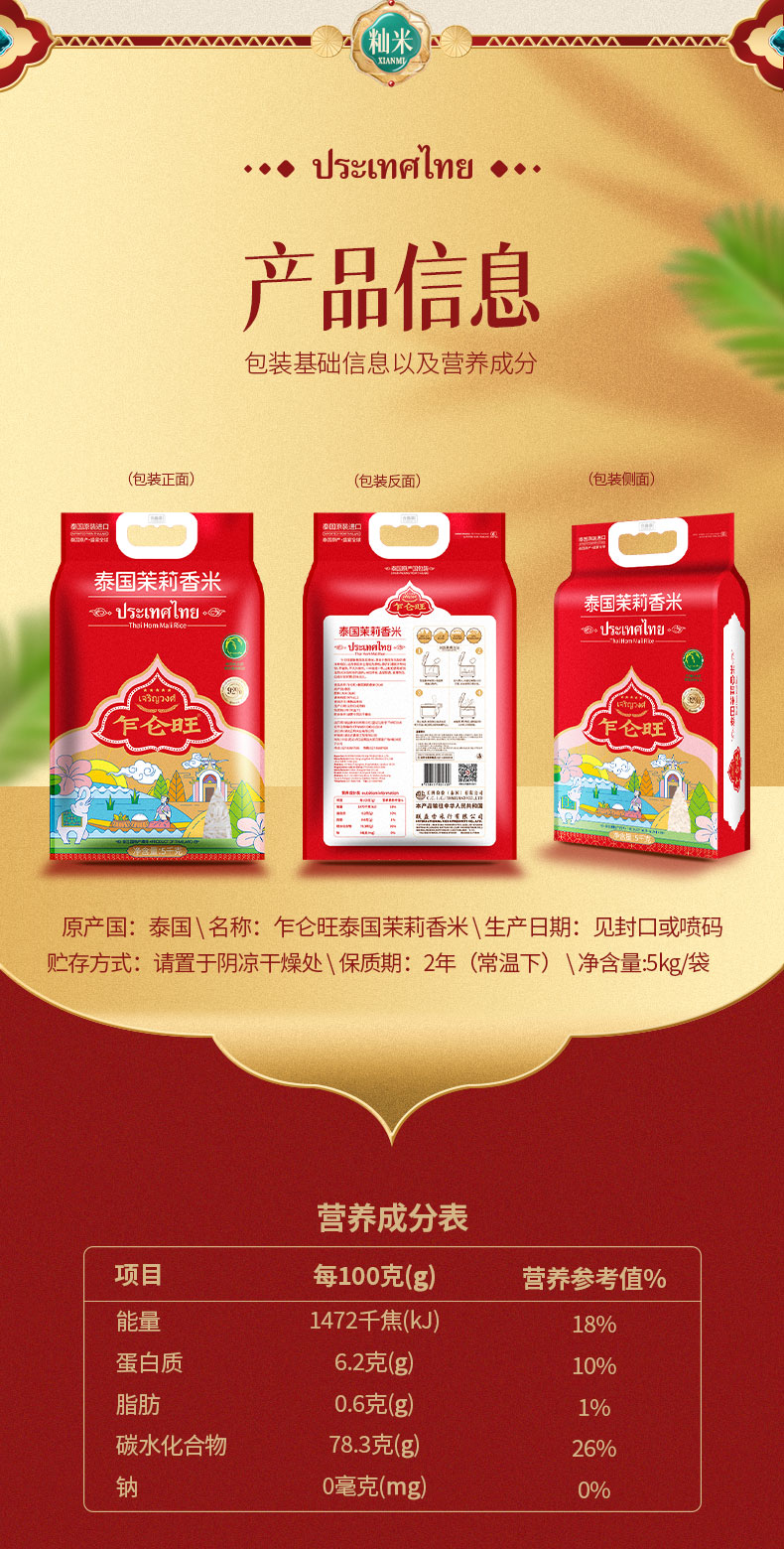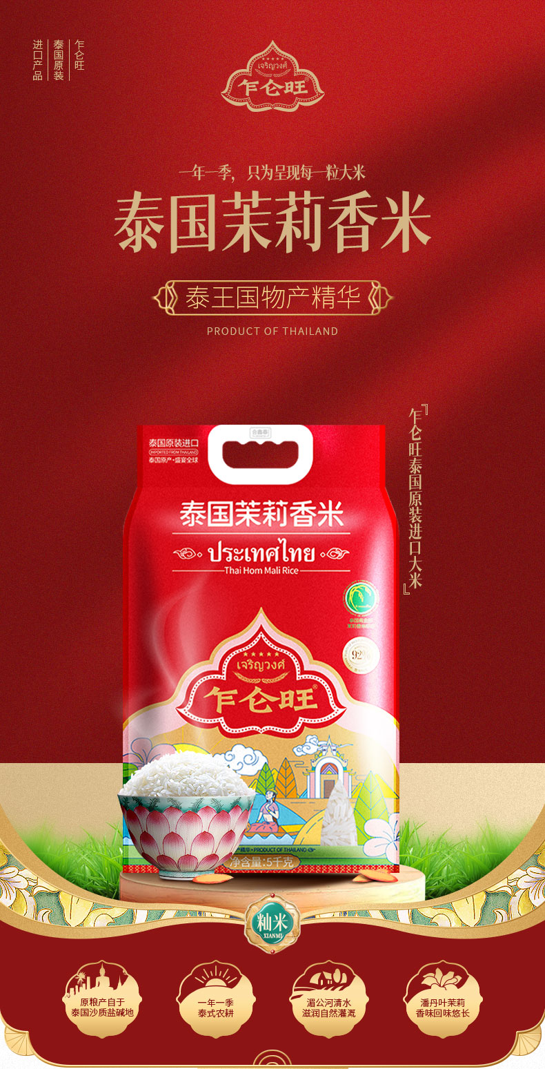 【严选】 合鑫泰 乍仑旺原装泰国茉莉香米(红色真空)5kg (厂家直发)