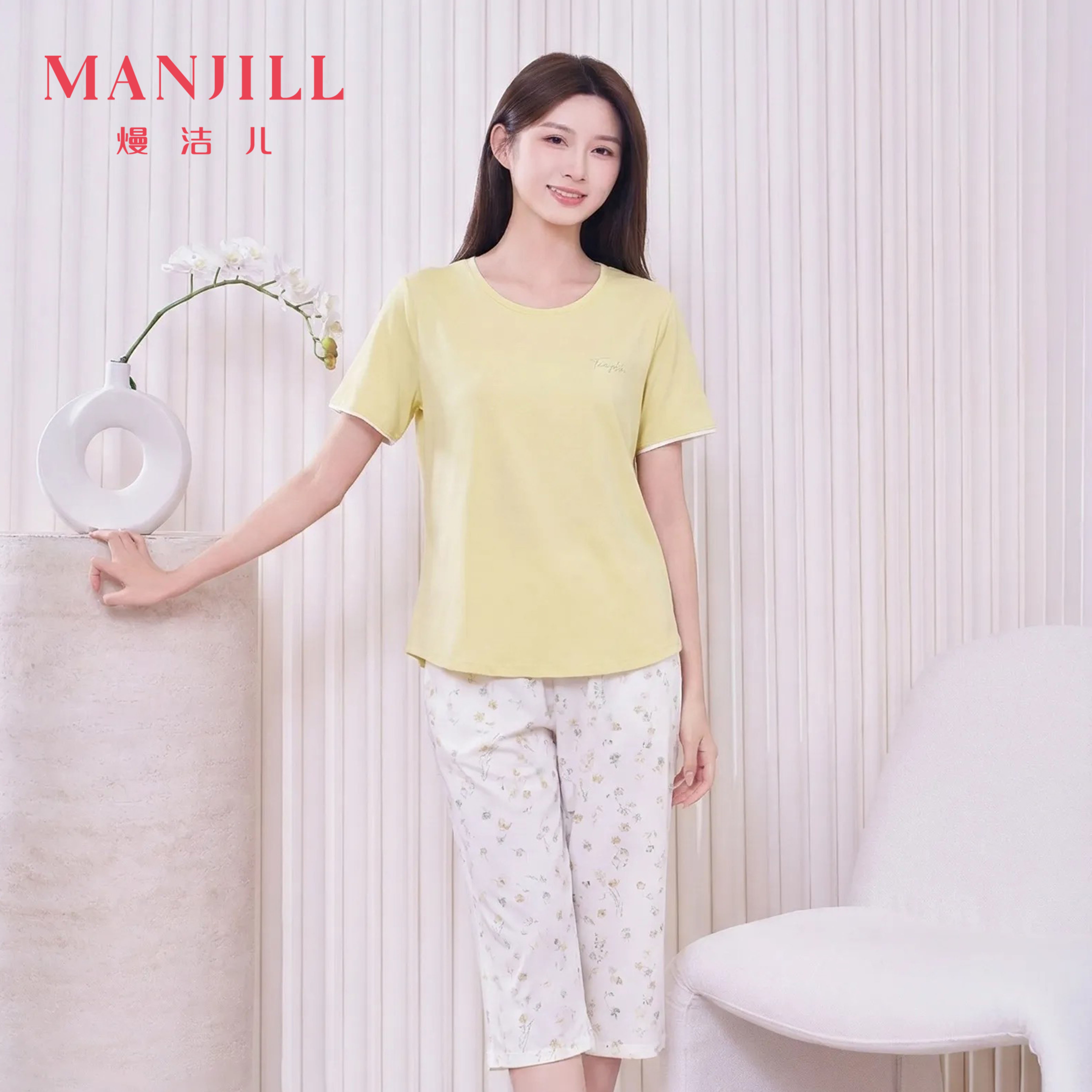 【商场同款】熳洁儿 天丝贡缎家居服短袖七分裤套装碎花26203009