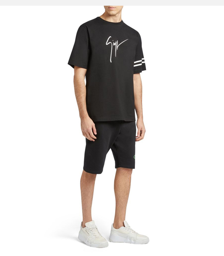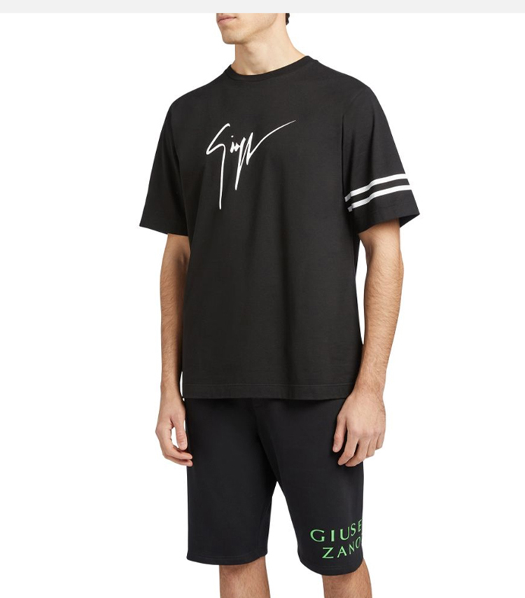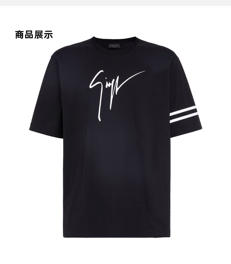 Giuseppe Zanotti 男士签名涂鸦徽标印花棉质圆领短袖T恤 黑色 ERU3013004