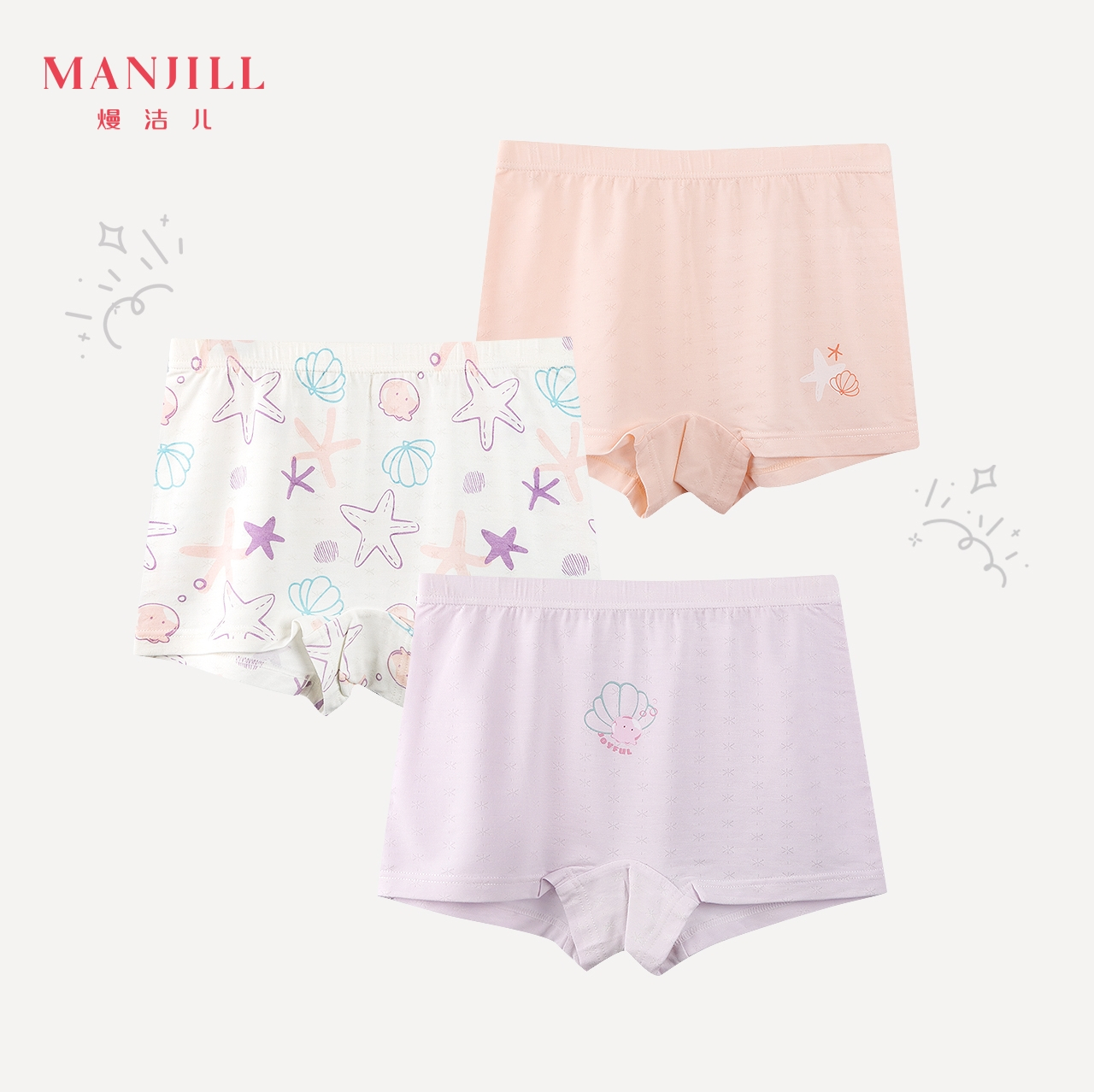 【商场同款】【3条装】熳洁儿 女童平角裤舒适莫代尔内裤可爱印花25202603