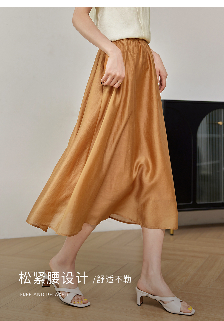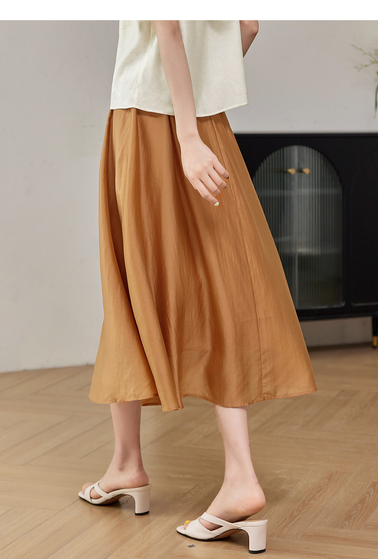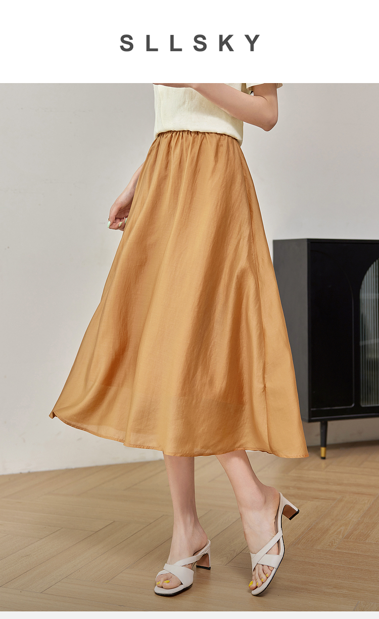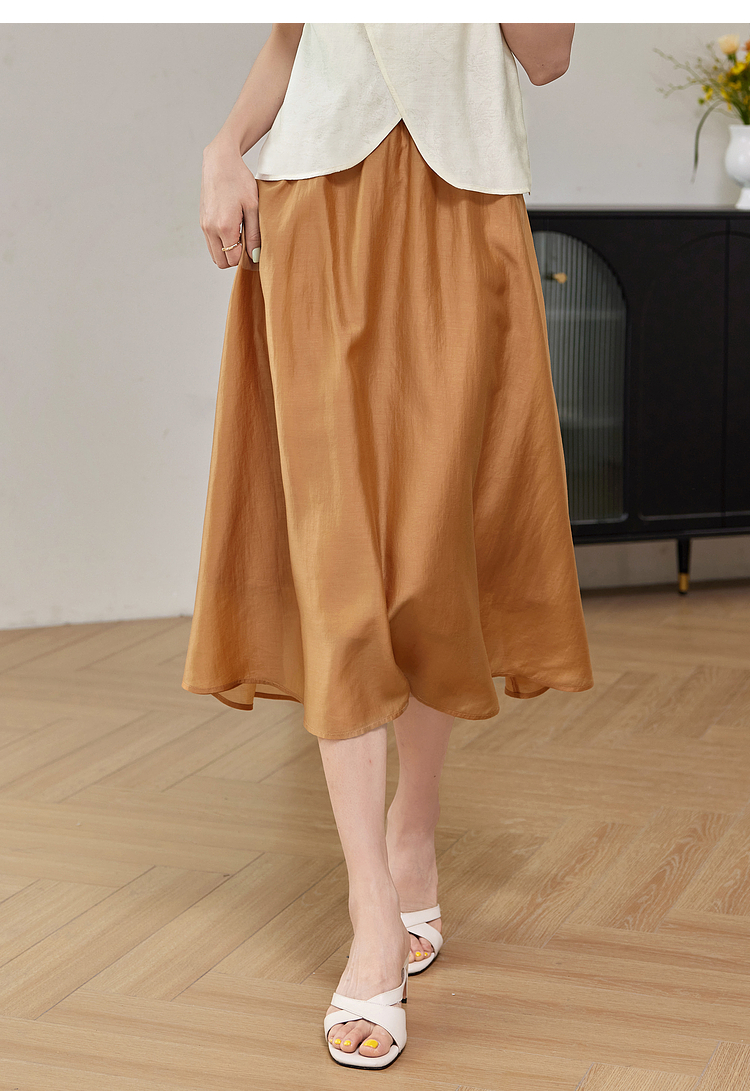 【专属特价】熙世界凉感天丝半身裙中长款2025夏季新款法式垂感显瘦a字裙子