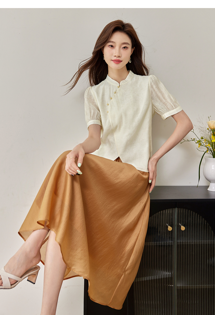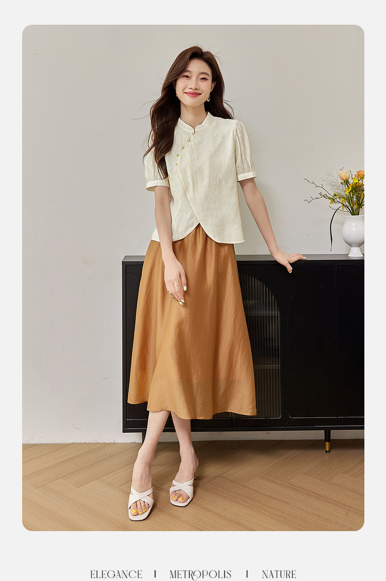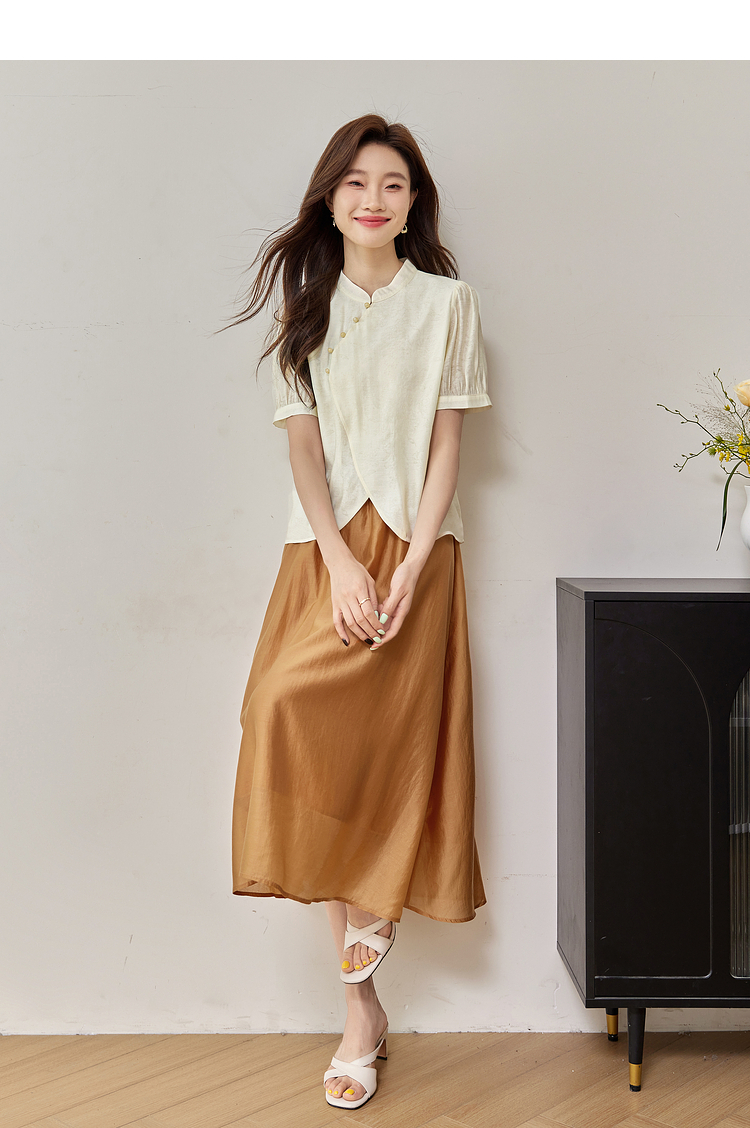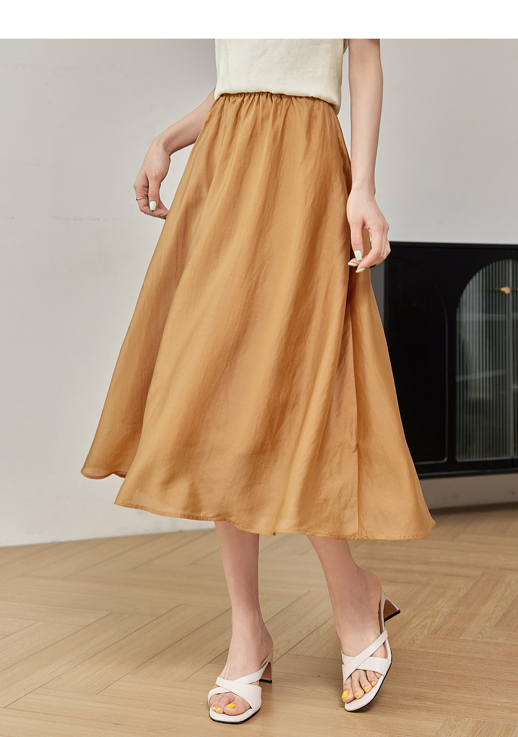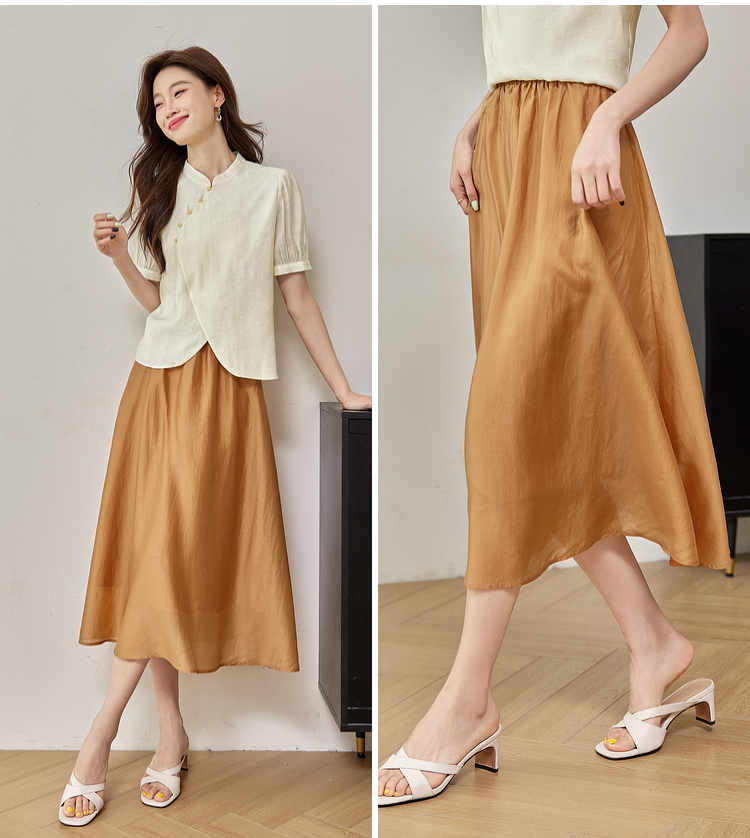 【专属特价】熙世界凉感天丝半身裙中长款2025夏季新款法式垂感显瘦a字裙子