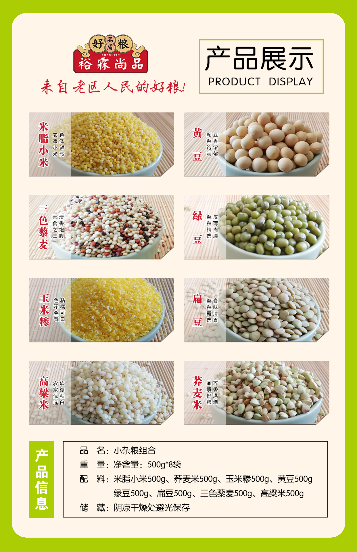 三色藜麦500g/米脂小米500g/荞麦米500g/玉米糁500g/黄豆500g/扁豆500g/绿豆500g/高粱米500g