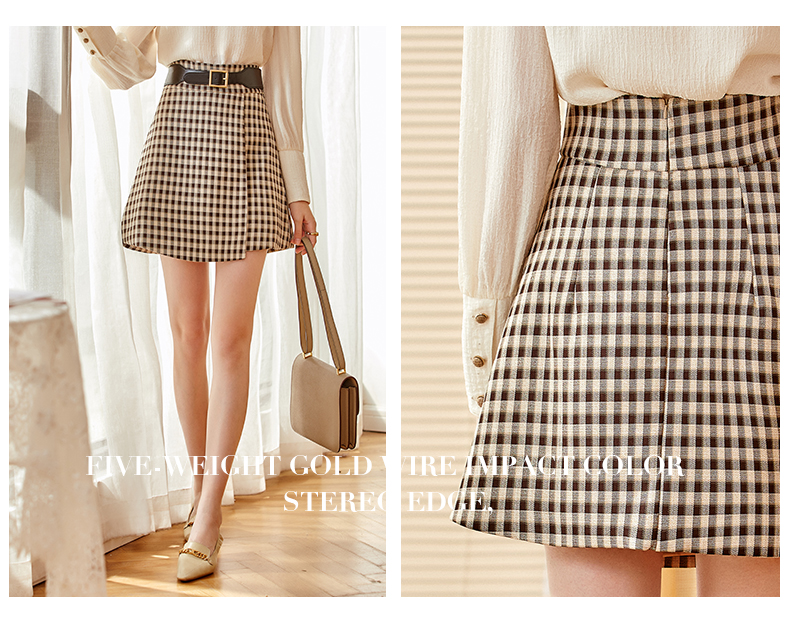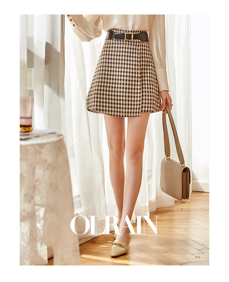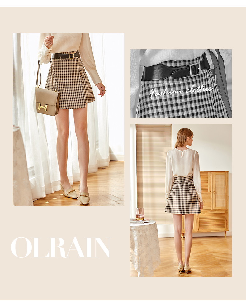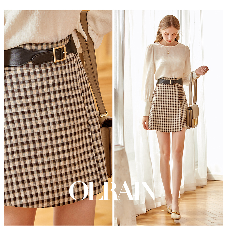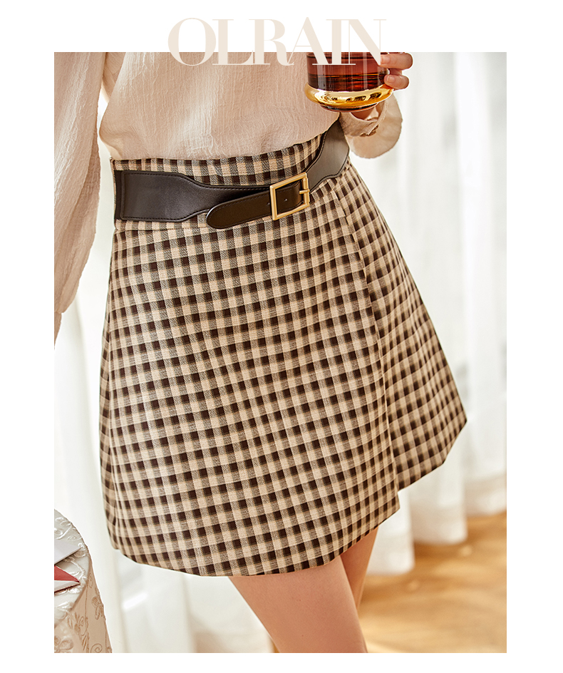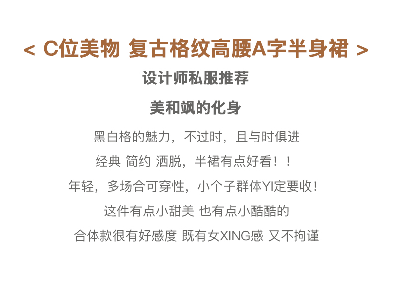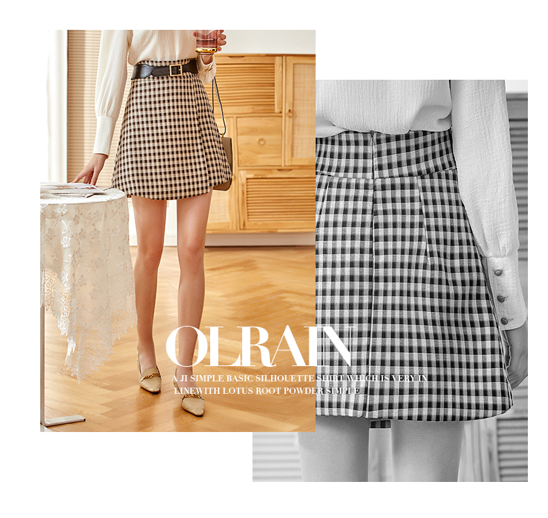 欧芮儿黑白格纹半身裙春季新款高腰显瘦经典复古简约小个子A字裙