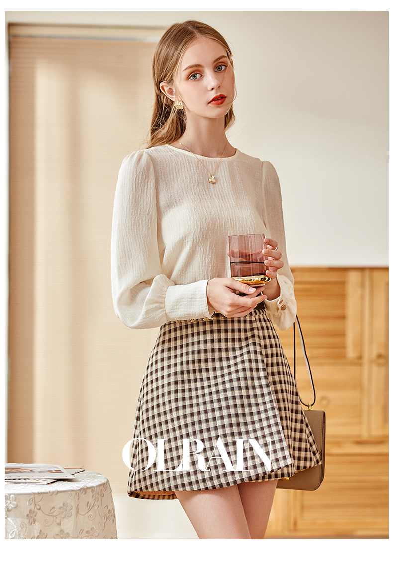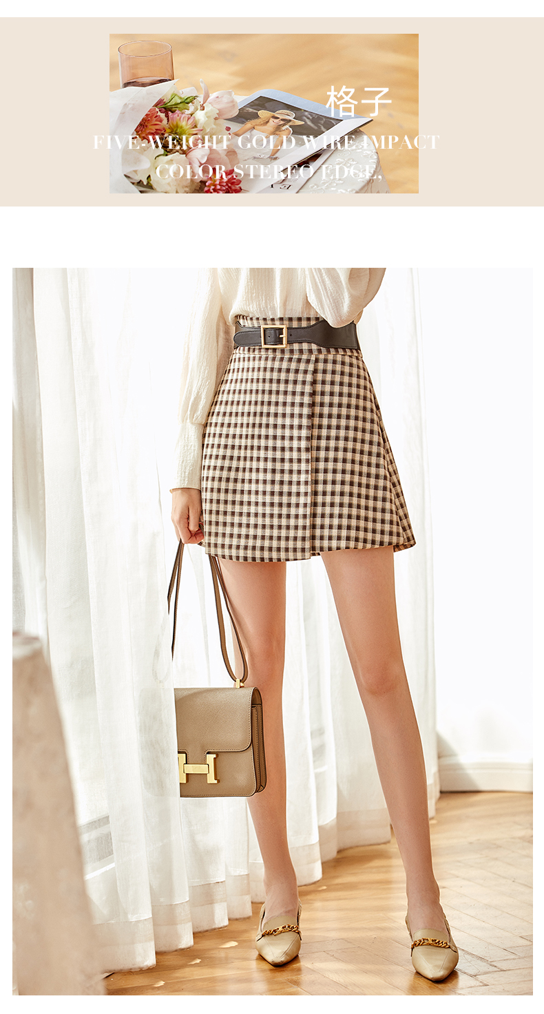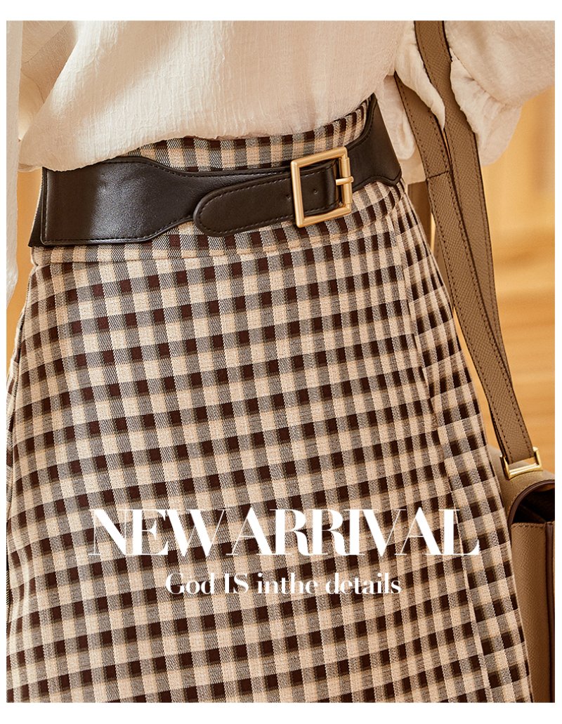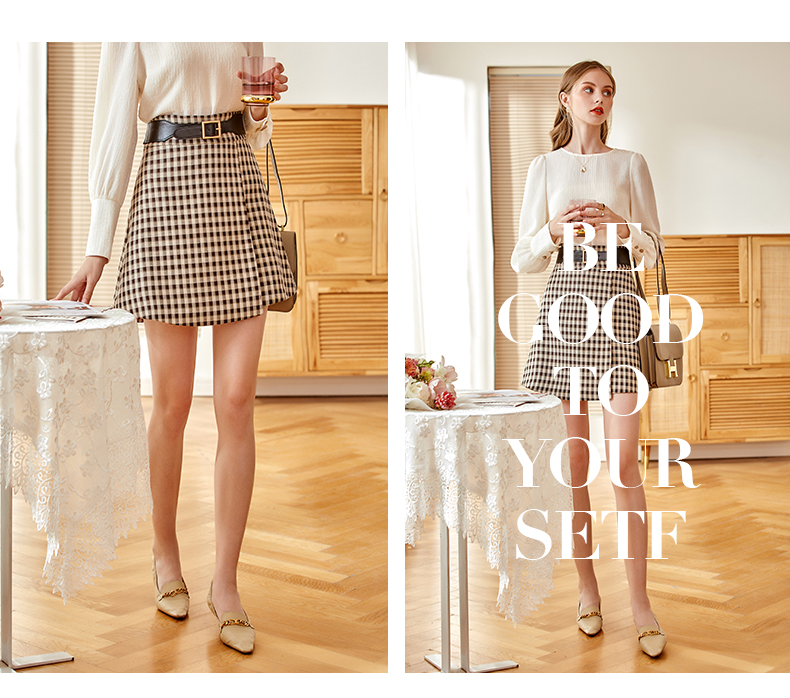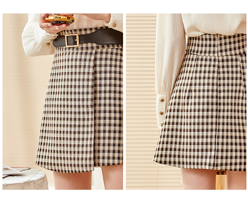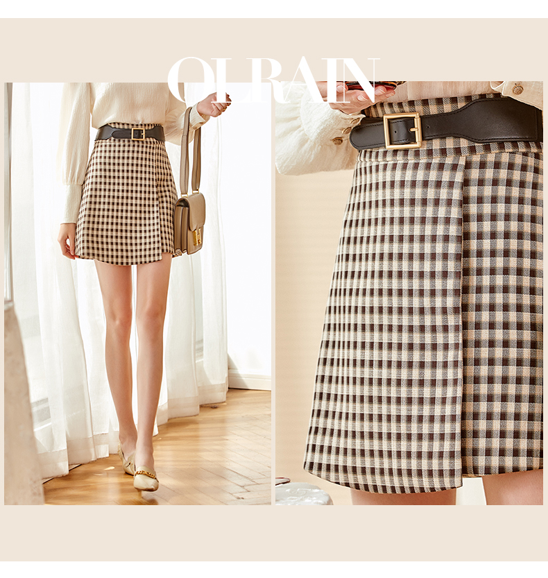 欧芮儿黑白格纹半身裙春季新款高腰显瘦经典复古简约小个子A字裙
