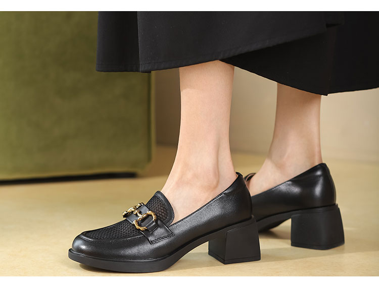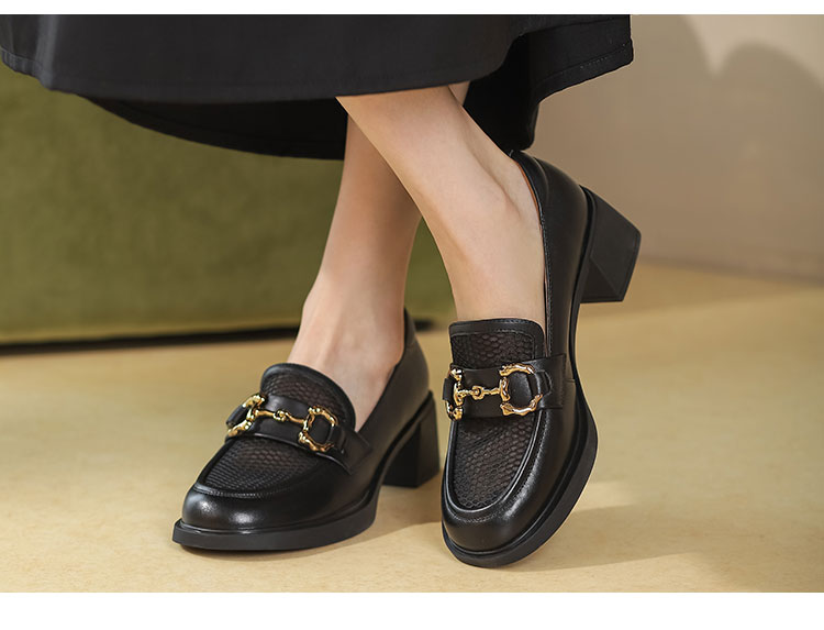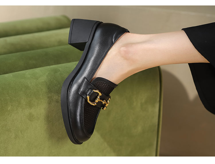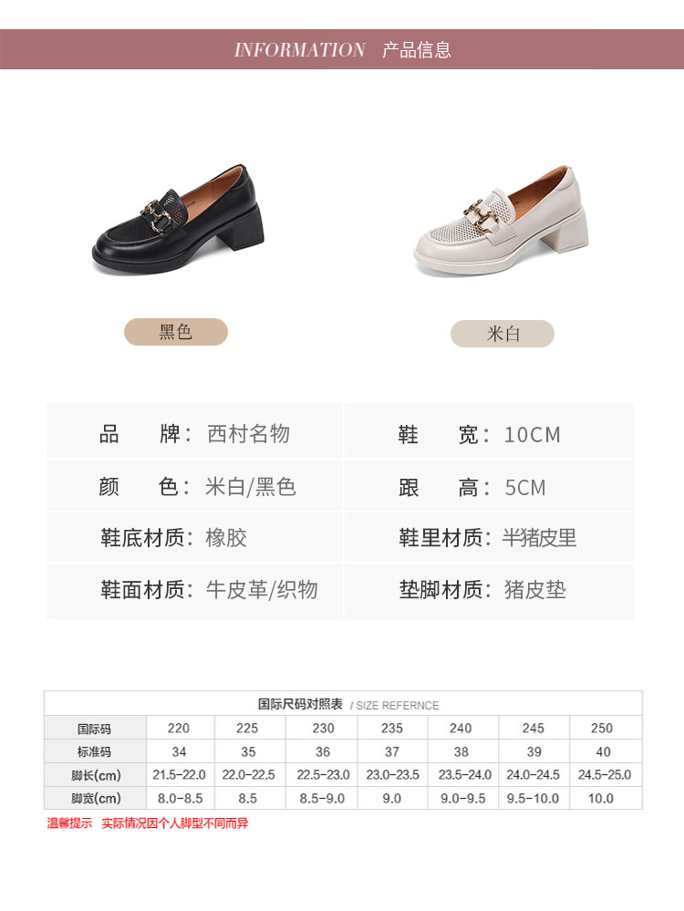 西村名物2022夏新款乐福鞋女英伦风小皮鞋大头jk鞋黑色单鞋T22AH11311