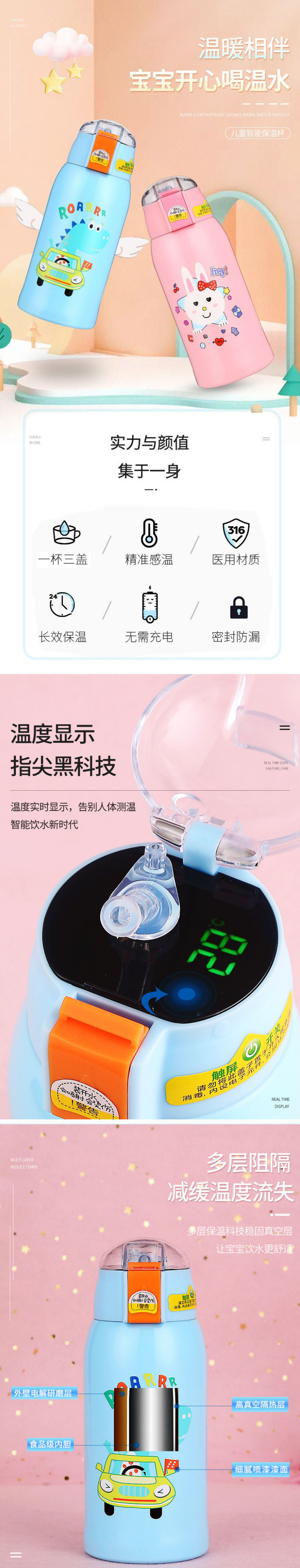 【59元会员福利】智能DIY洞洞保温杯 (一杯三盖高真空儿童壶)