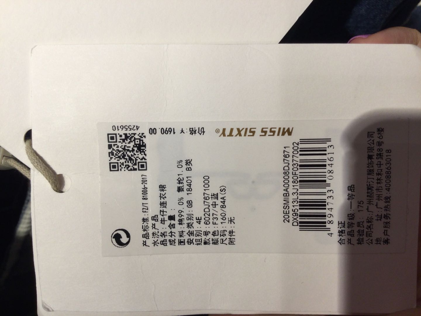 MISS SIXTY夏季短袖牛仔连衣裙602DJ7671000