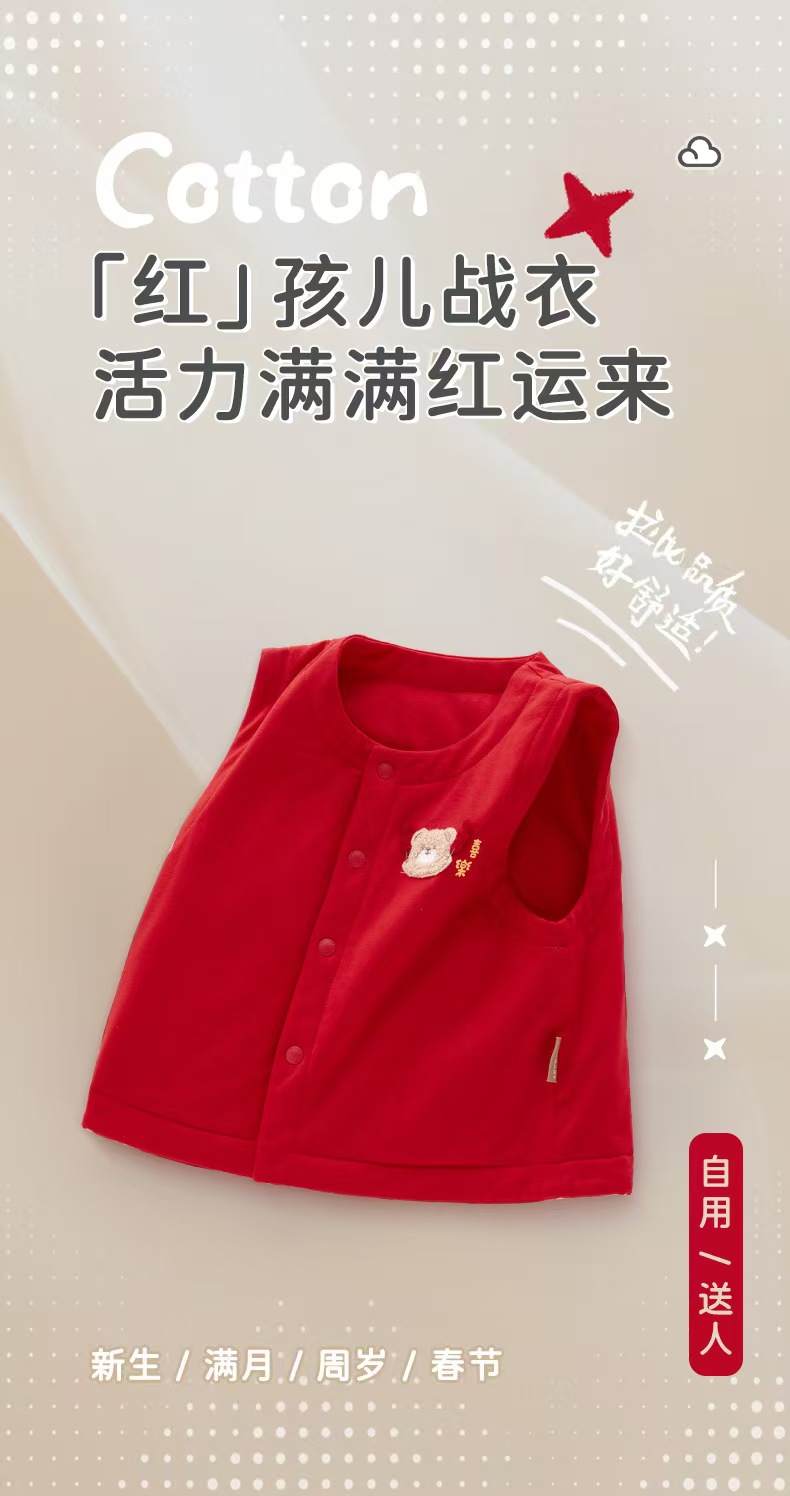 拉比-童衣类(春)I5喜乐全开马夹红色LYAB102306