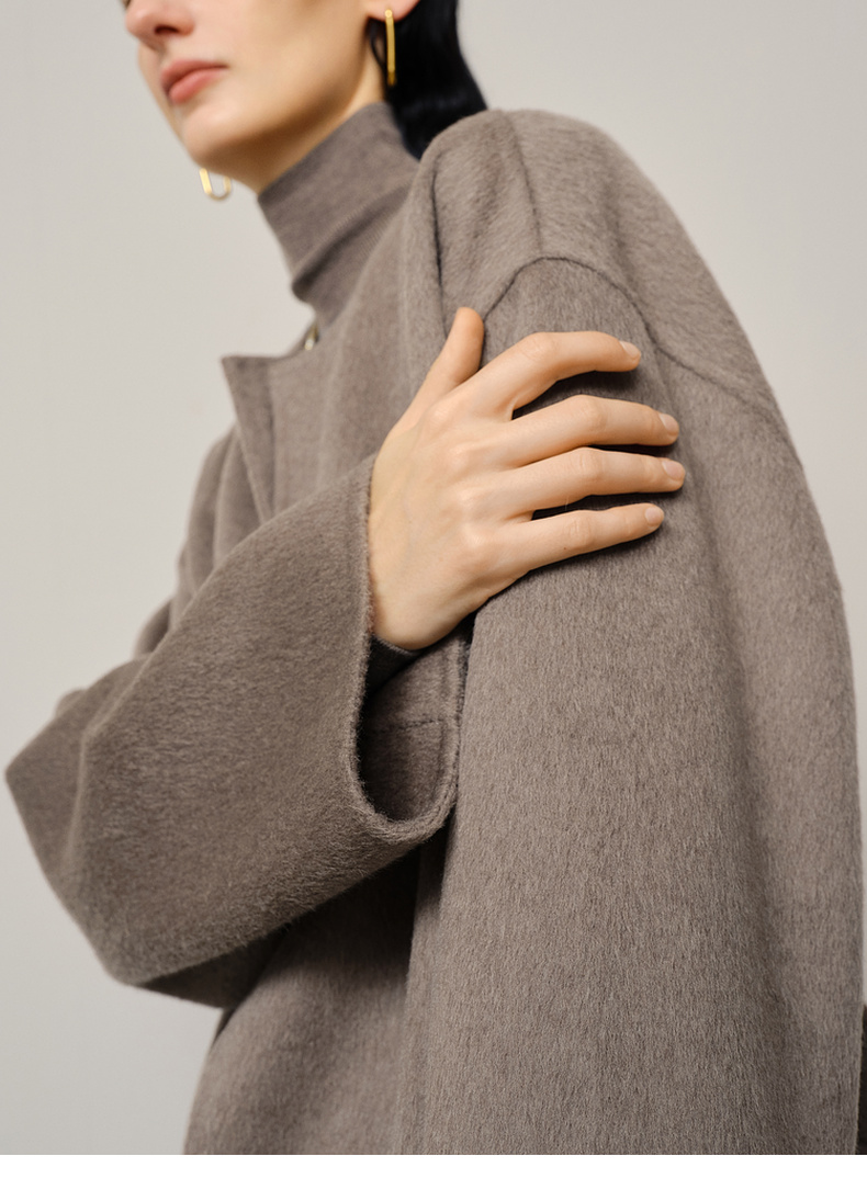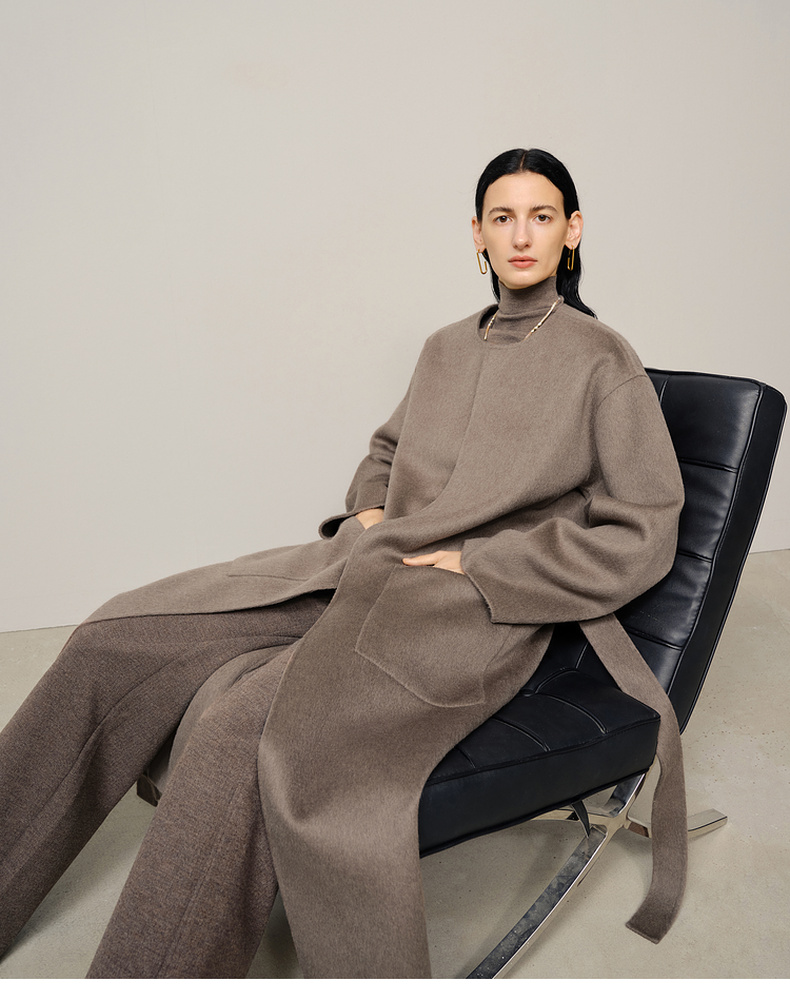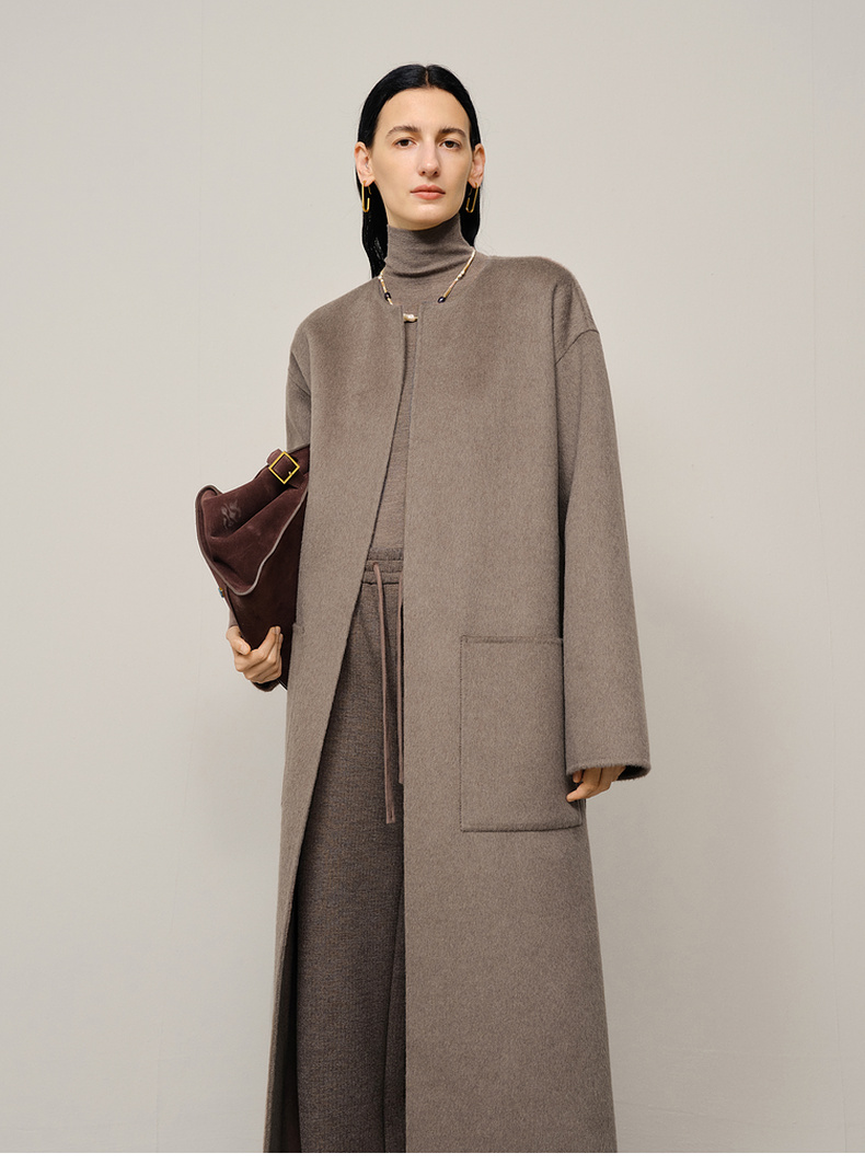 【商场同款】麦檬冬智感驼色羊毛高级感长款大衣5FA271021