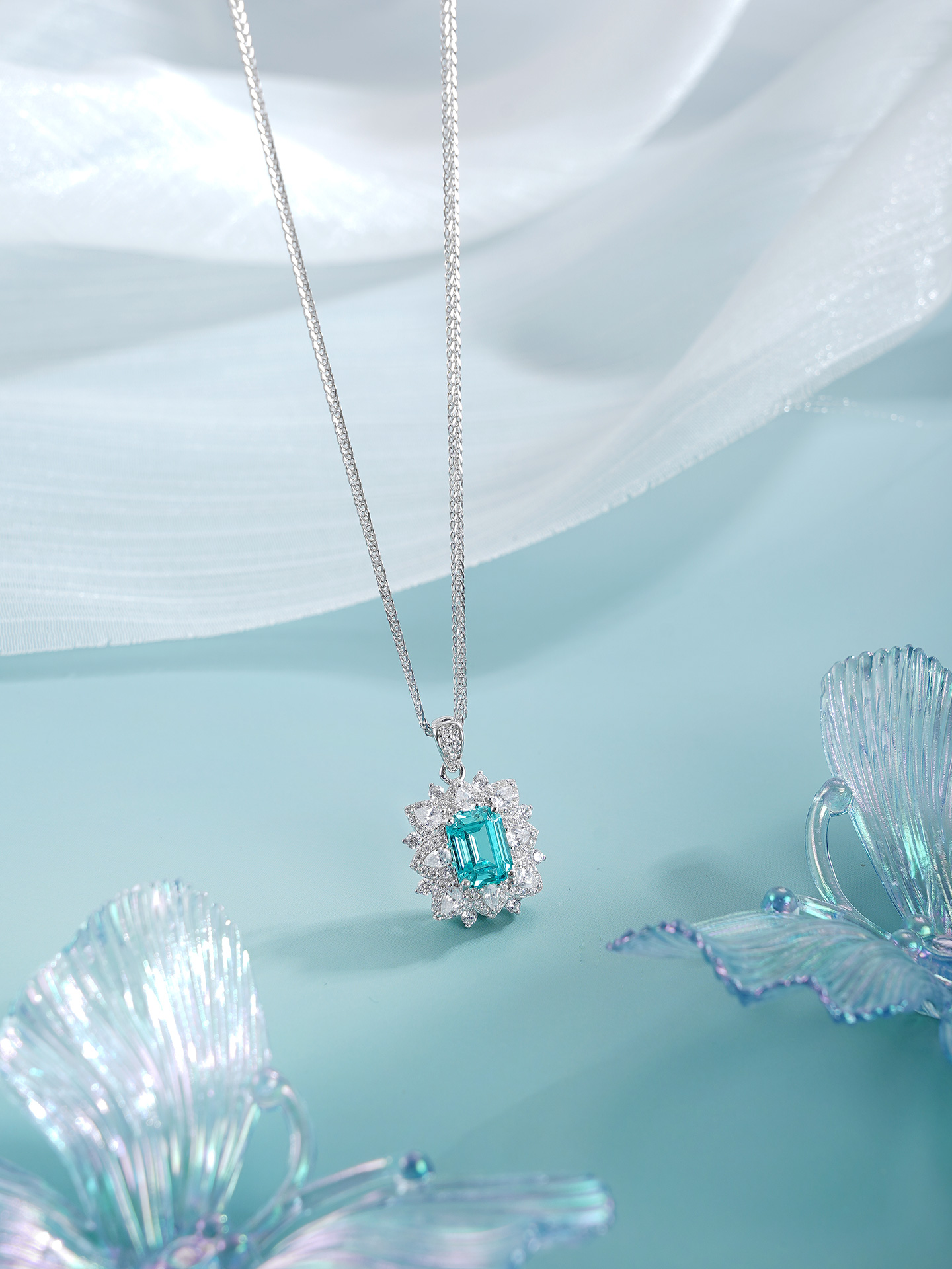 子佩集【宁静花海】S925银套链【PM2245-XF】培育宝石帕拉伊巴蓝碧玺大方块2510