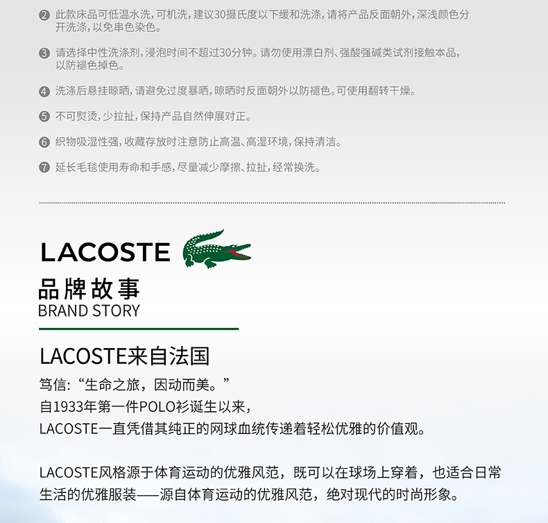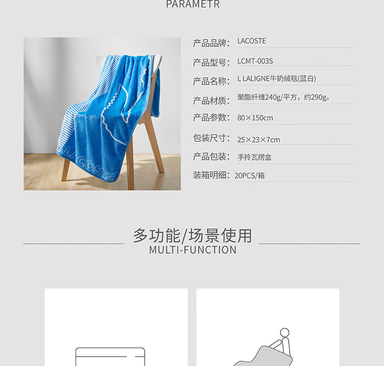 【分仓直发包邮】LACOSTE L LALIGNE牛奶绒毯LCMT-003S