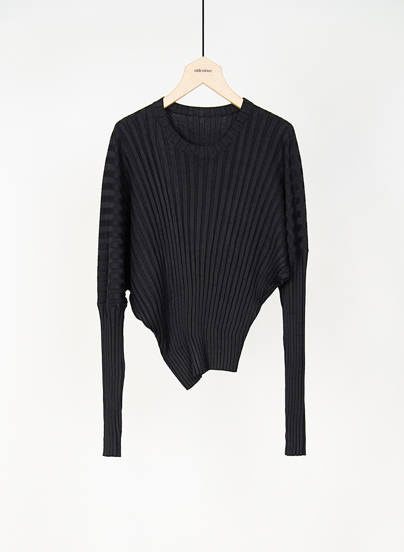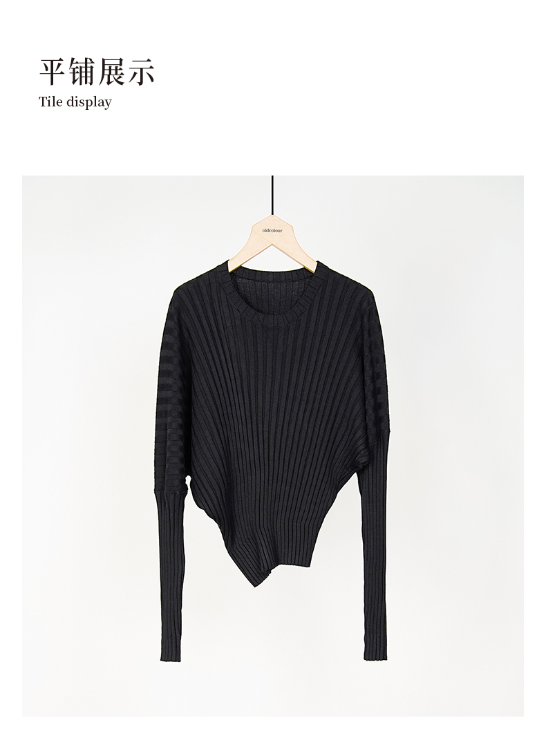 oldcolour春秋款黑色圆领短款长袖针织套头衫女O12052259