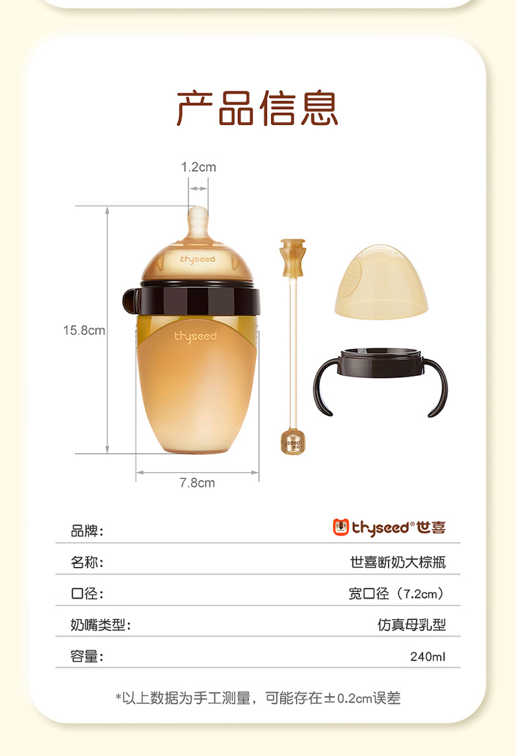 Thyseed世喜 宝宝断奶奶瓶柔软瓶身防胀气设计宝宝喂养用品 240ml 0-10月