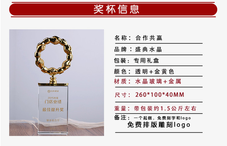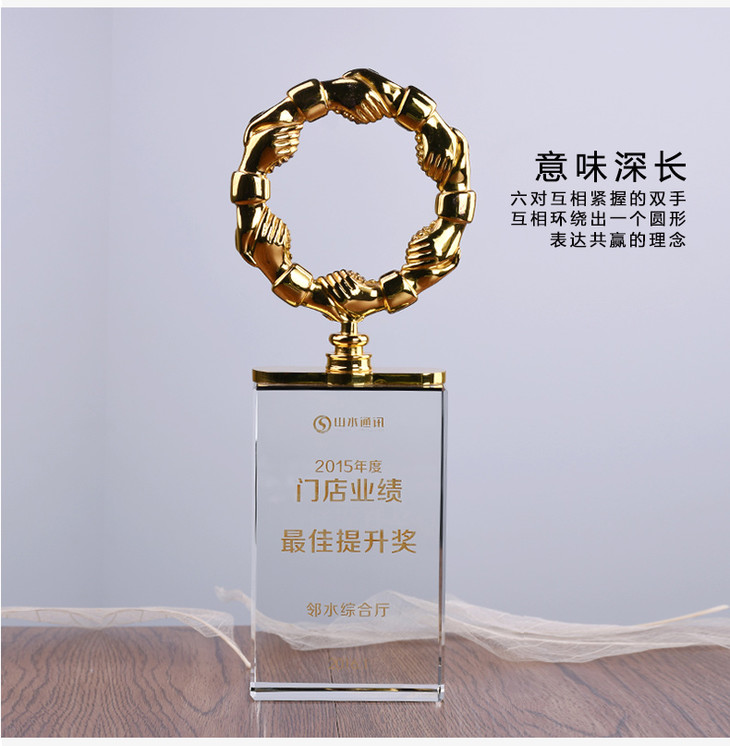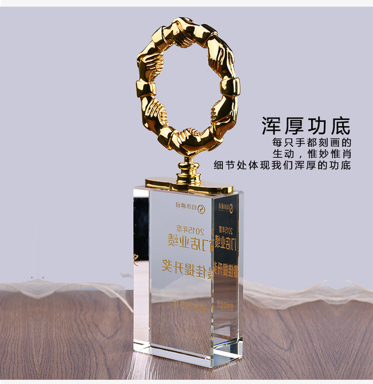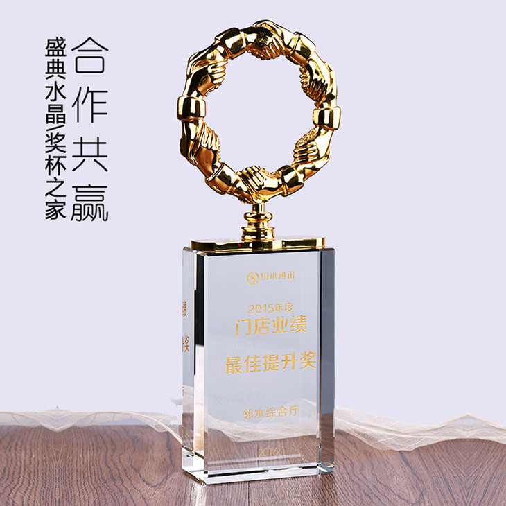合作共赢奖杯金属奖杯定制握手奖杯经销商奖牌授权牌定做纪念品
