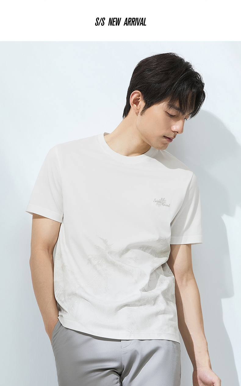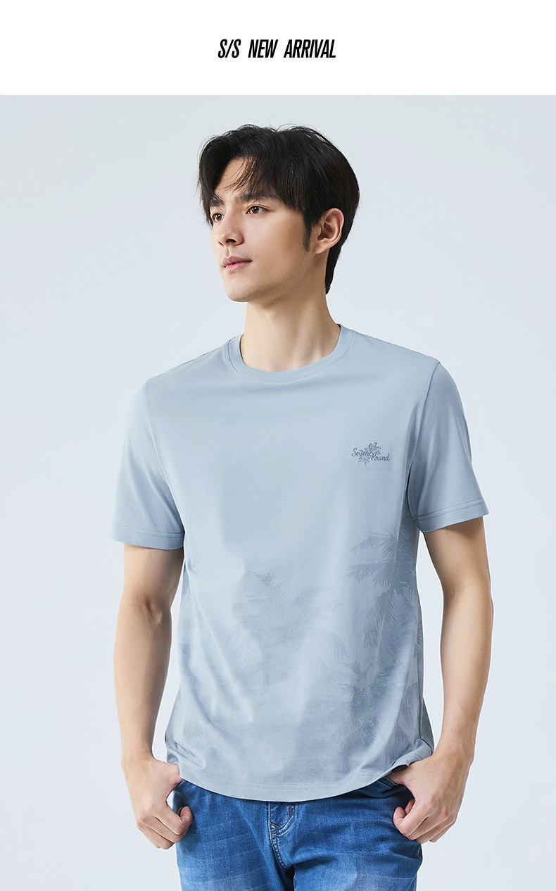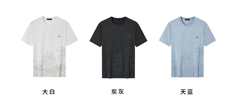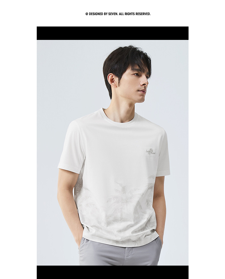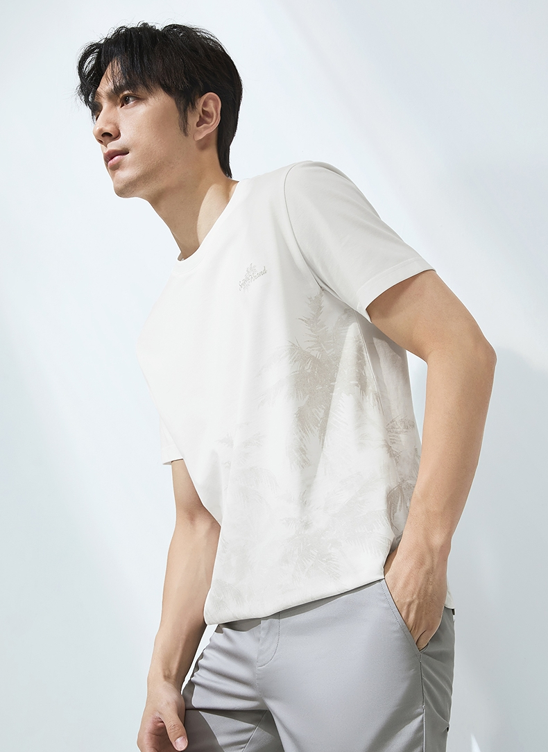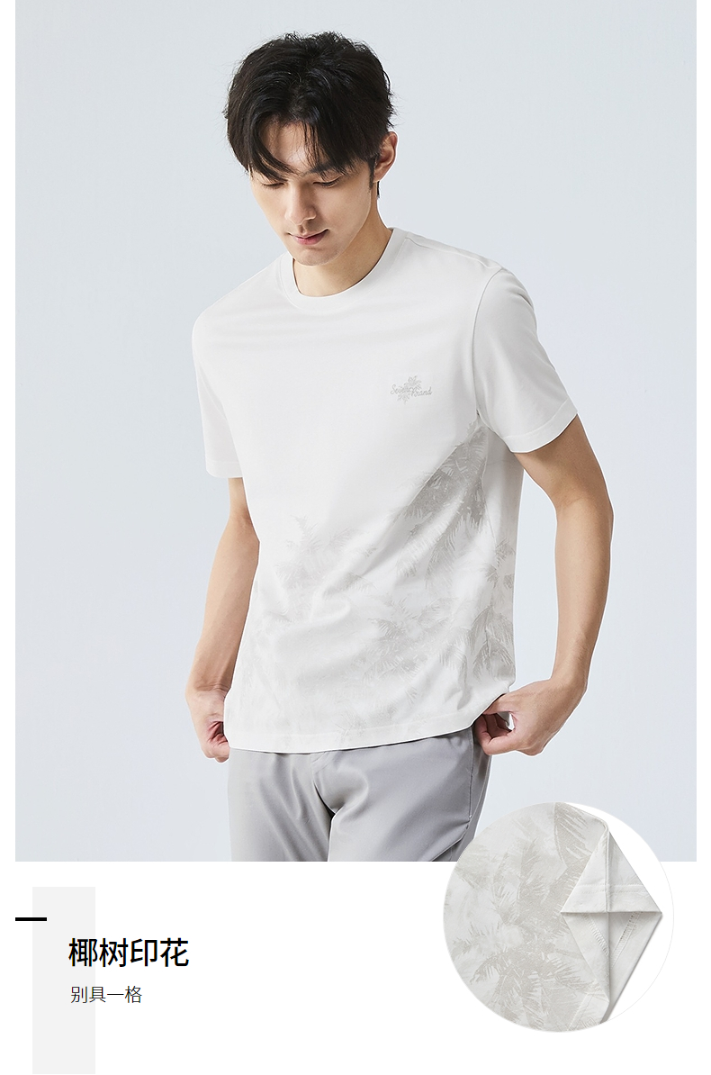 【7A抗菌2A防螨】柒牌男士短袖T恤夏季凉感椰树印花休闲圆领体恤