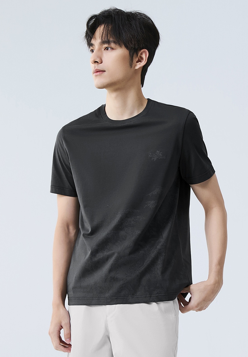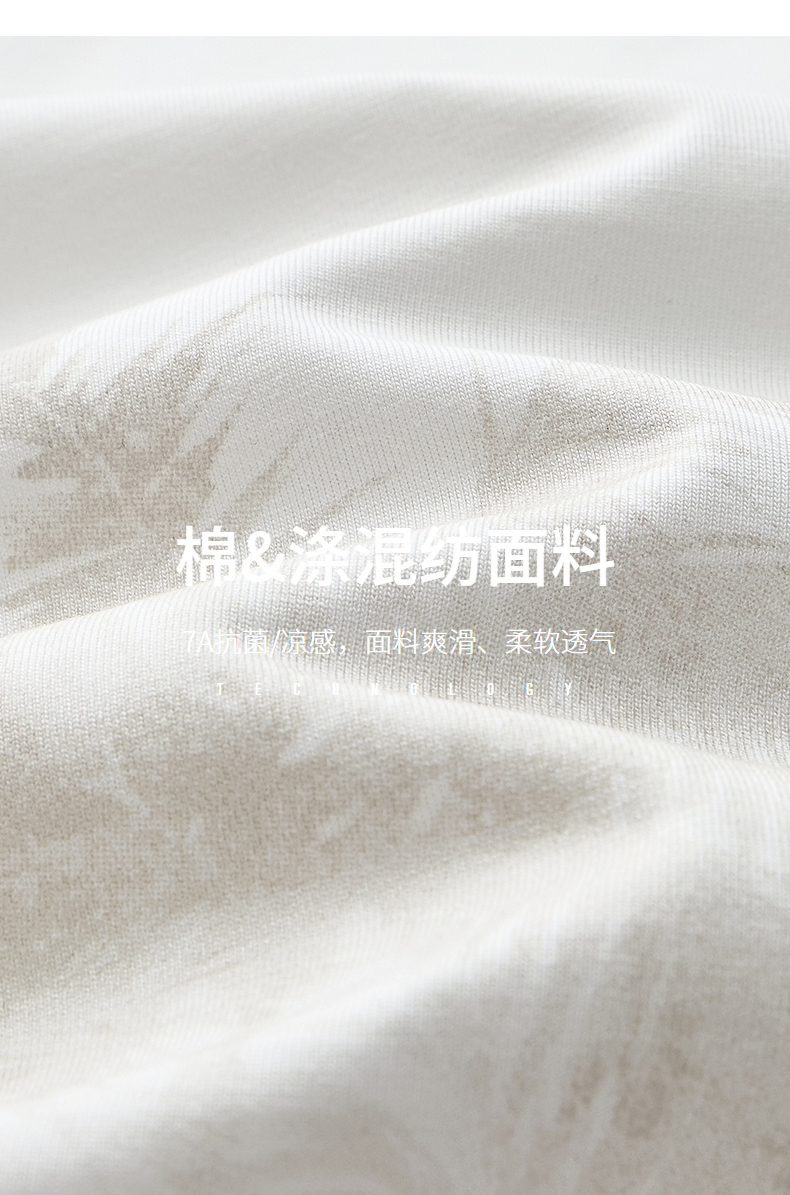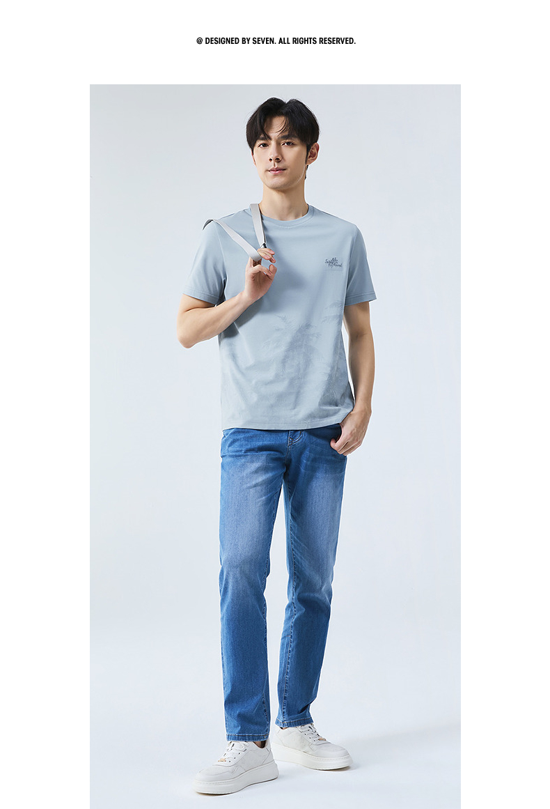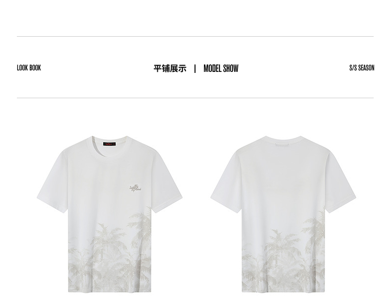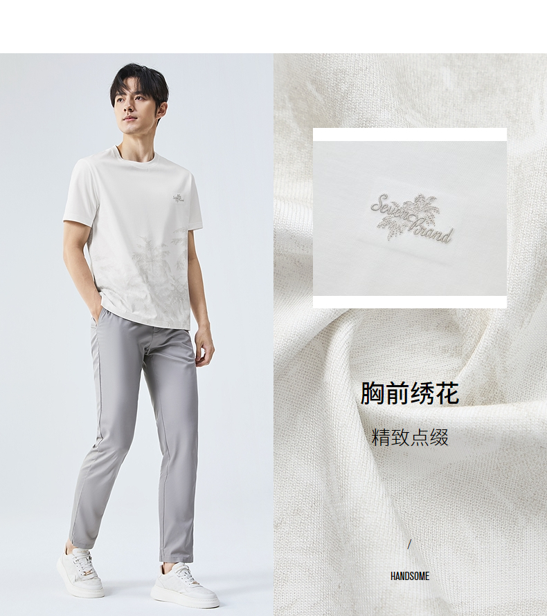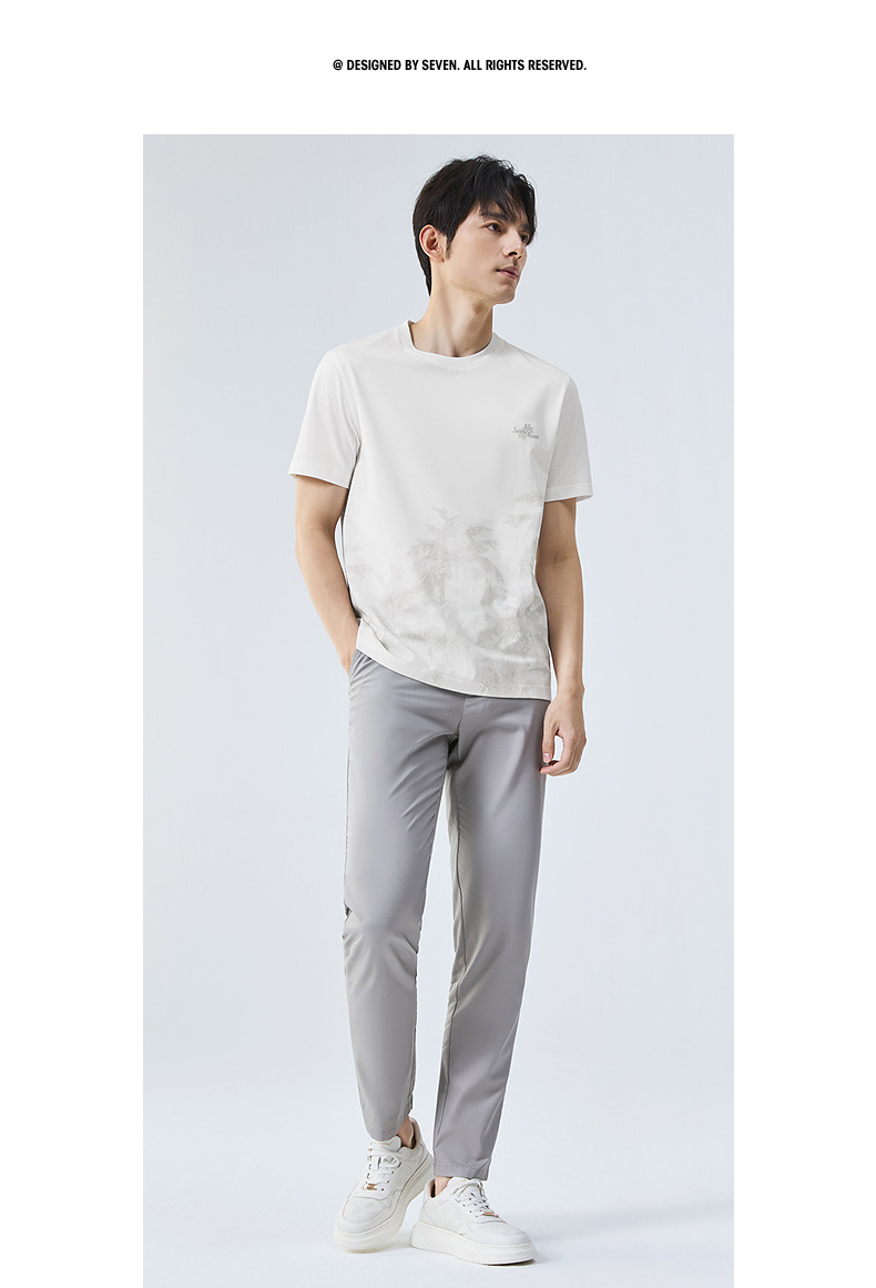 【7A抗菌2A防螨】柒牌男士短袖T恤夏季凉感椰树印花休闲圆领体恤