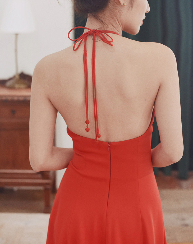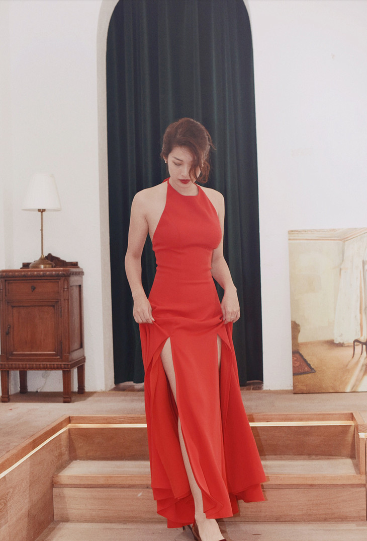 AtelierMissLu / Valentina 嘉年华红挂脖露背长礼服