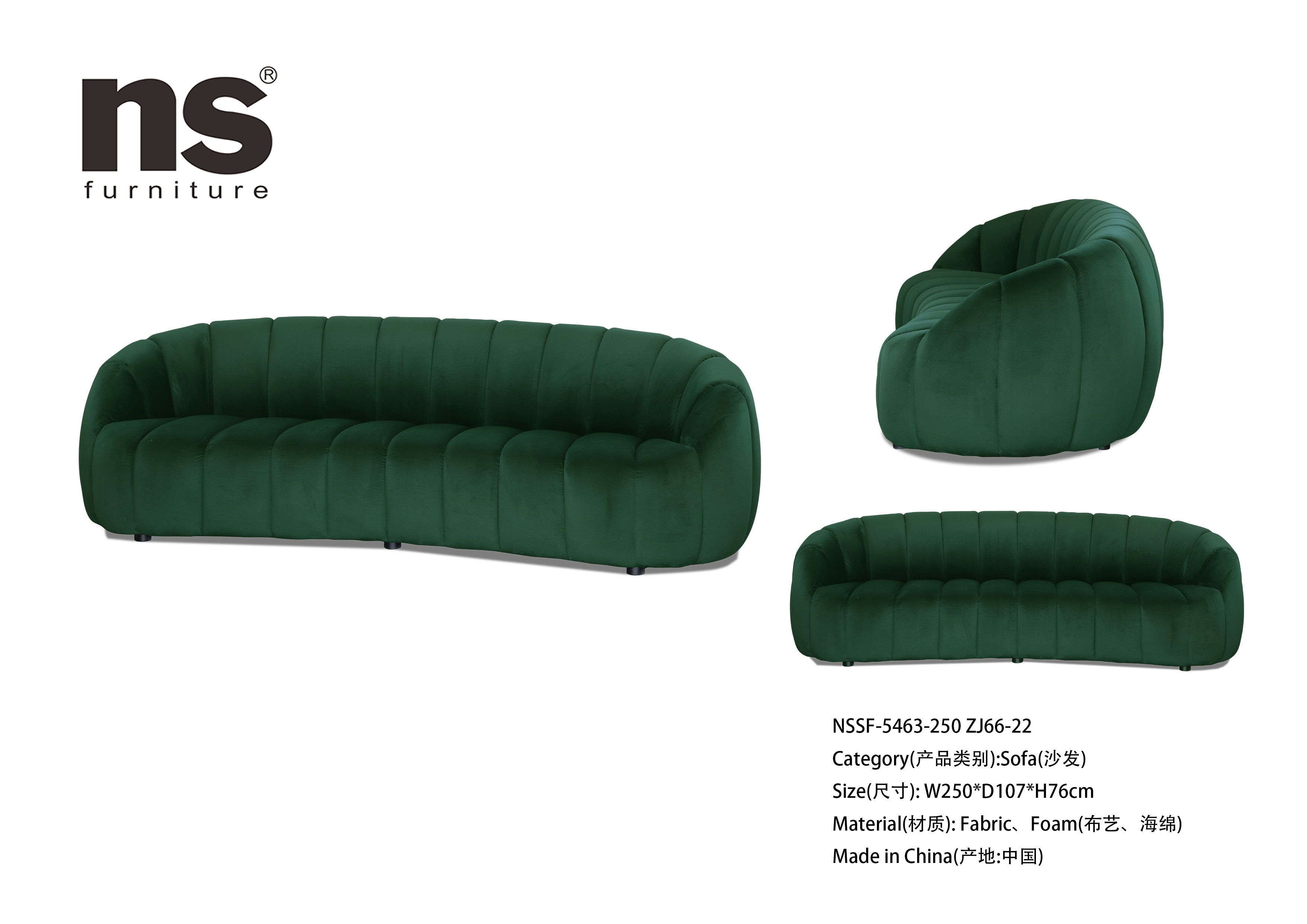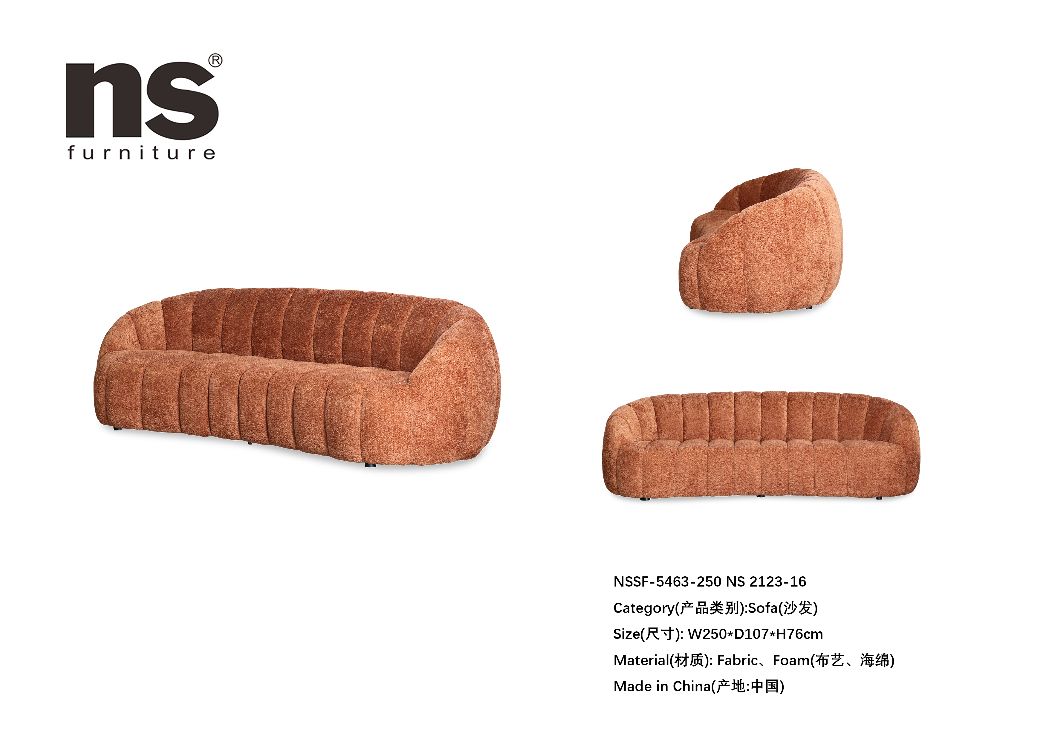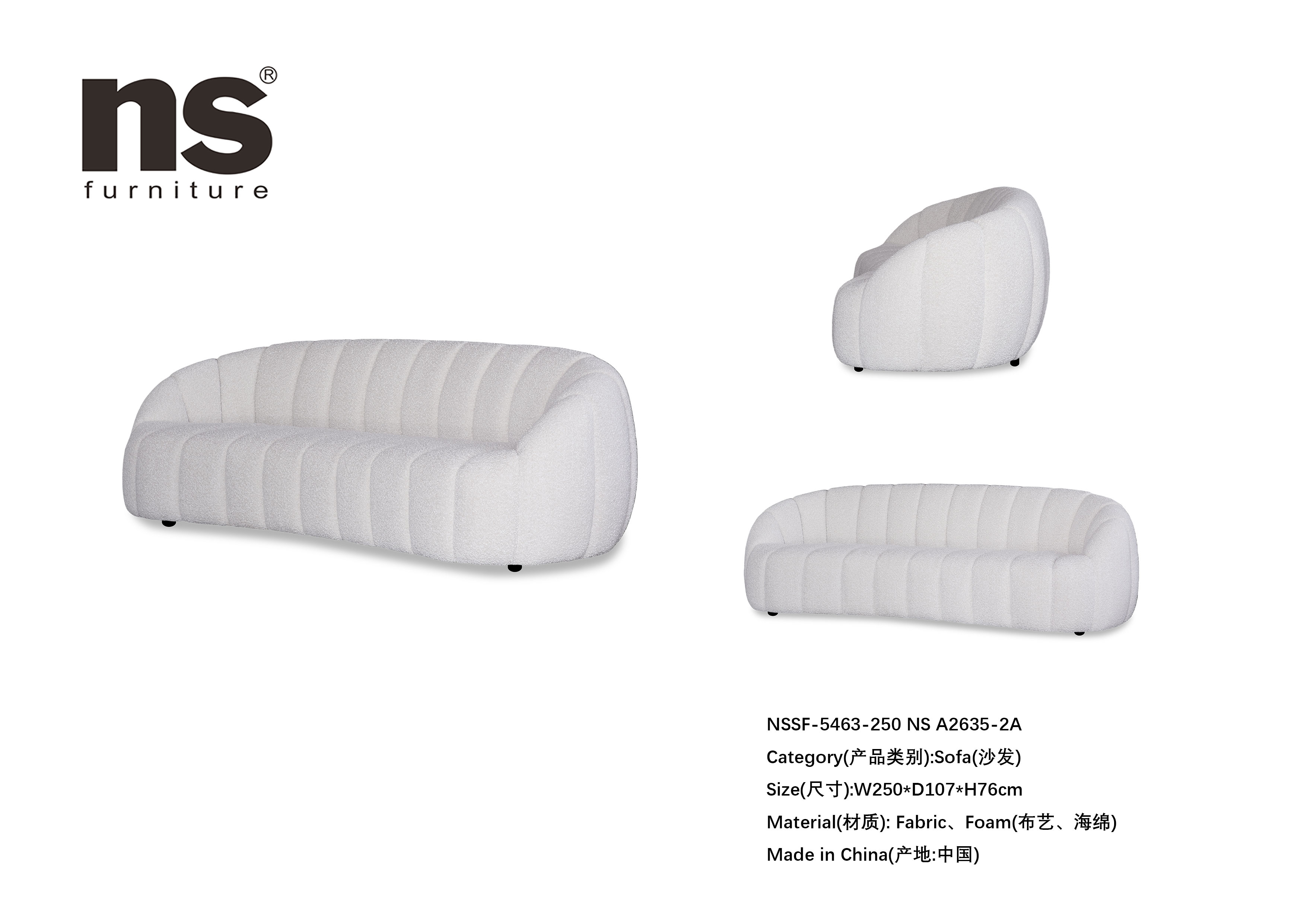 NS家居nsfurniture布艺三人位沙发NSSF-5463-250