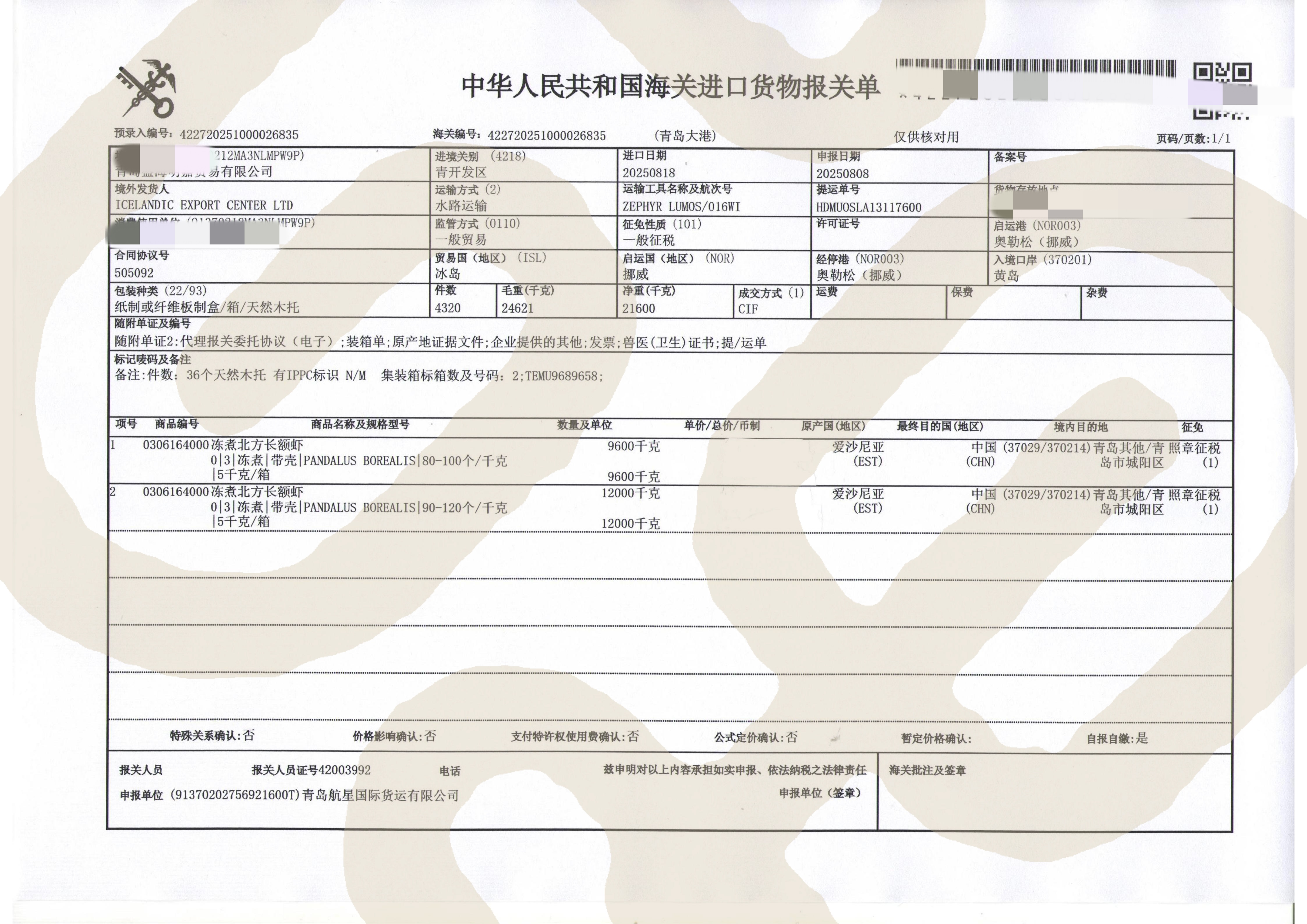 报关单和检验检疫报告高清大图奉上