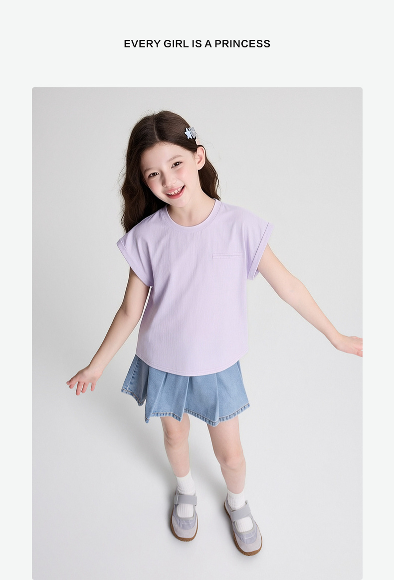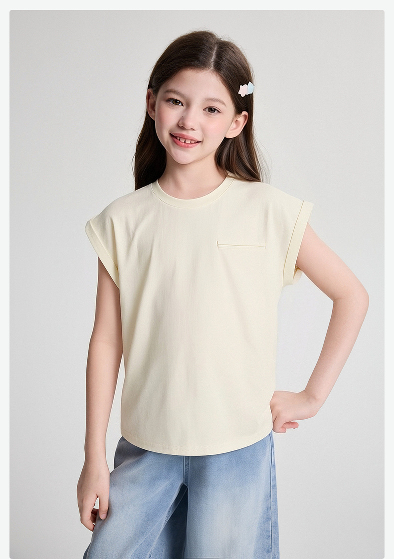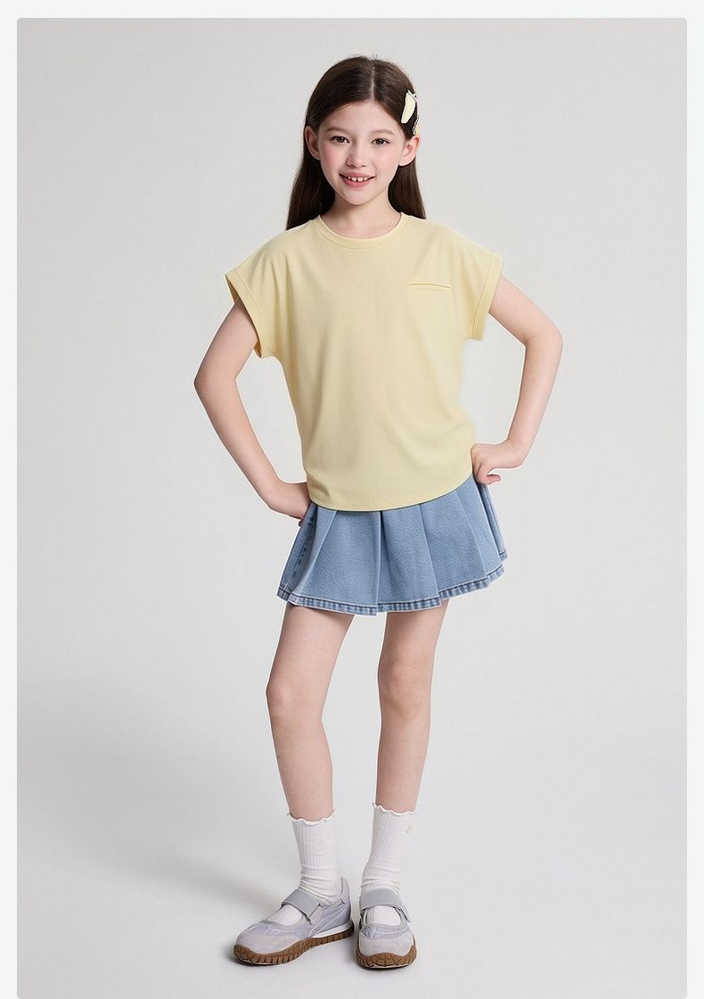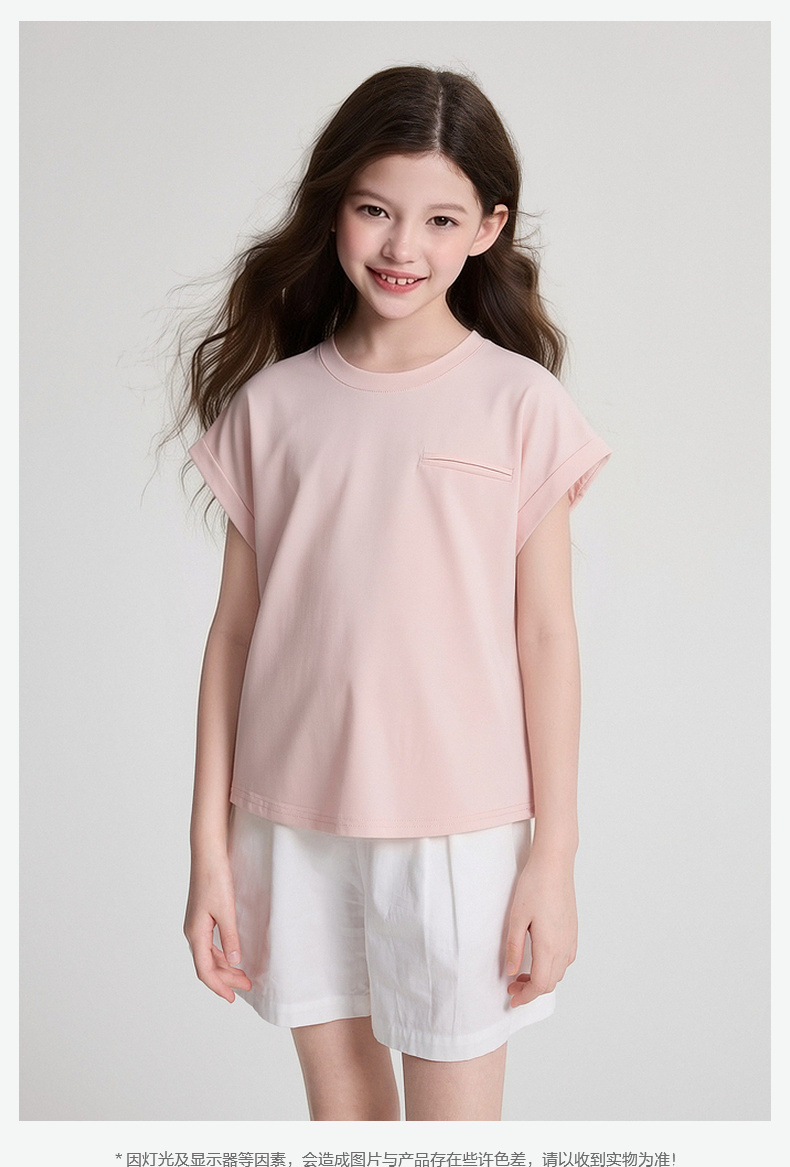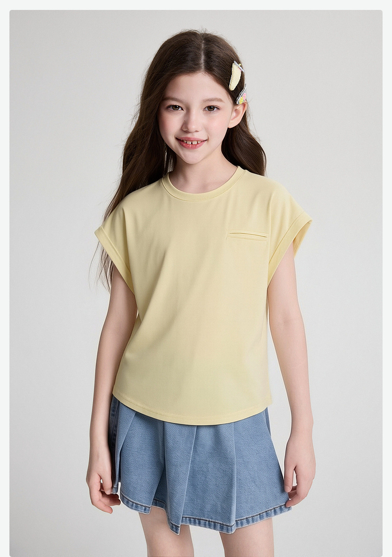 笛莎/Deesha 2026年夏季新款女童中大童圆领纯色T恤