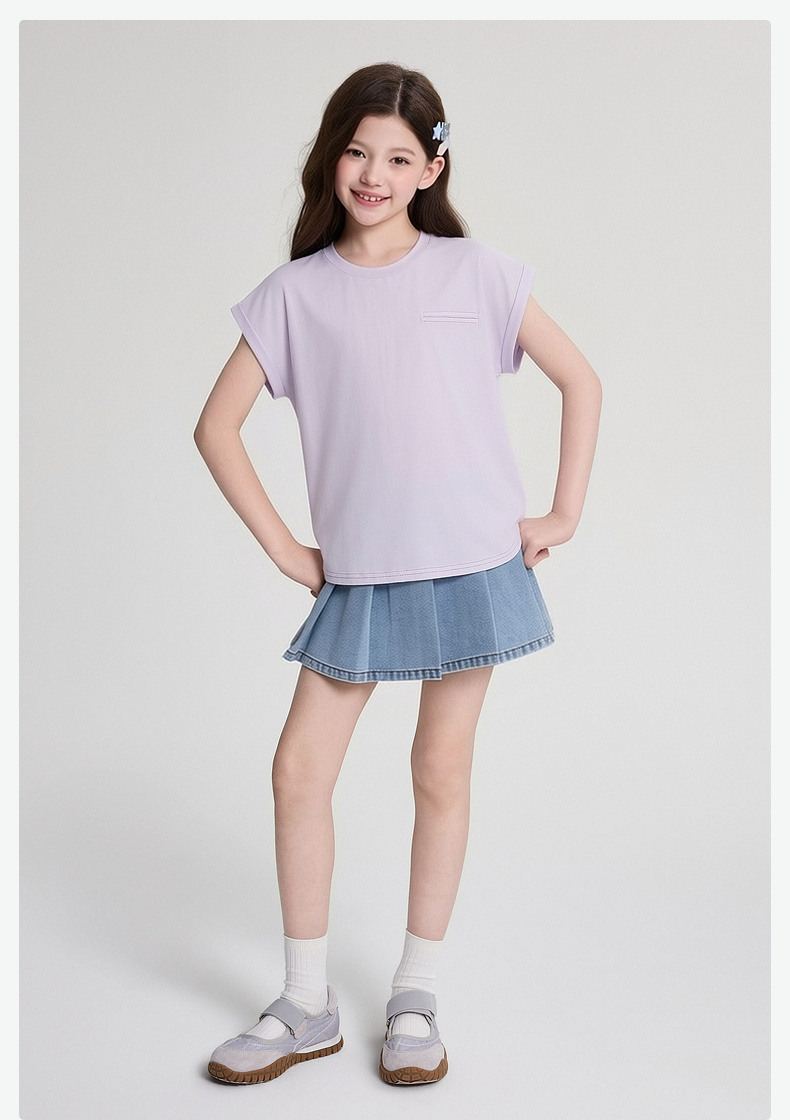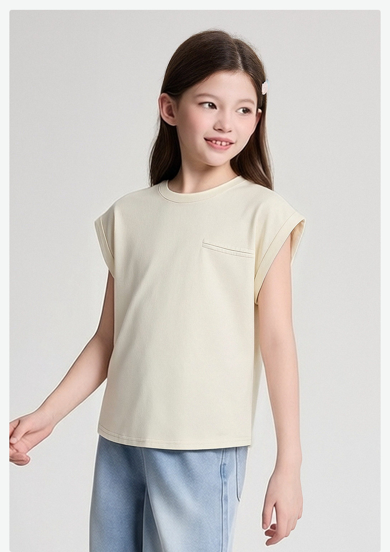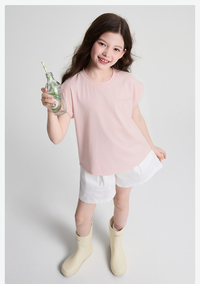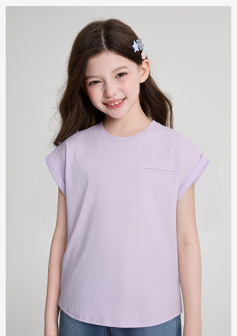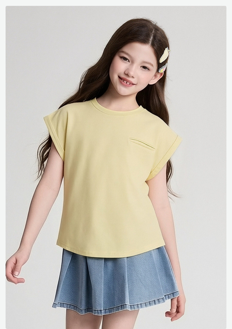 笛莎/Deesha 2026年夏季新款女童中大童圆领纯色T恤
