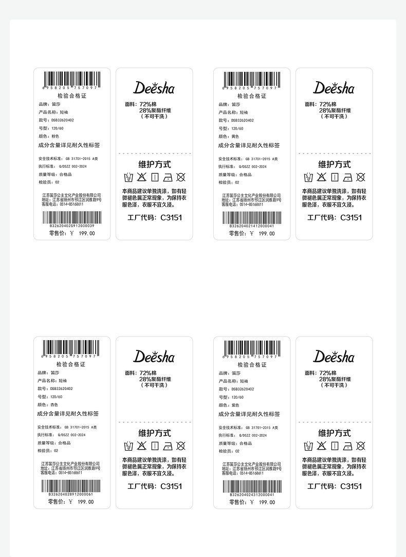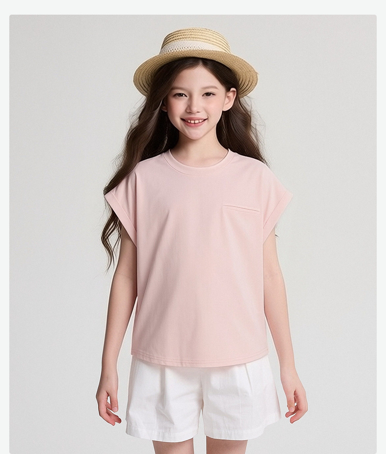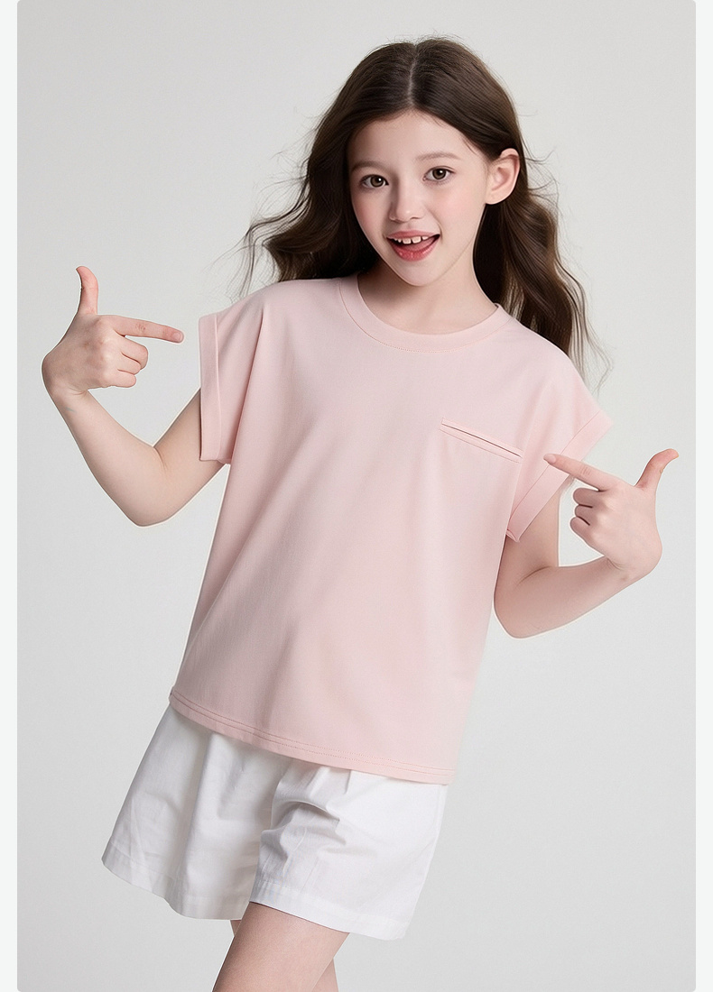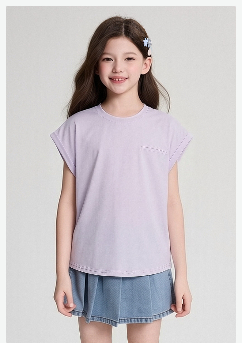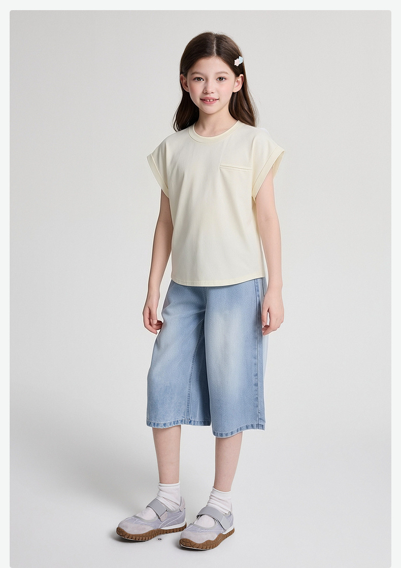 笛莎/Deesha 2026年夏季新款女童中大童圆领纯色T恤