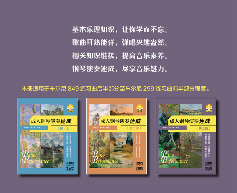 本套图书既能让成年人在熟悉的旋律中,快速掌握钢琴弹奏的基本技能,又能让成年的钢琴学习者在较短的学习时间内,运用所学的弹奏知识与技巧,进行自配歌曲伴奏,享受音乐带来的无穷乐趣。