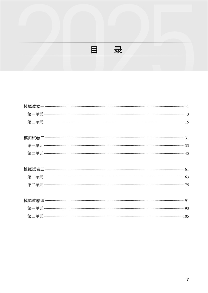 模拟试卷一 /1 第一单元 /3 第二单元 /15 模拟试卷二 /31 第一单元 /33 第二单元 /45 模拟试卷三 /61 第一单元 /63 第二单元 /75 模拟试卷四 /91 第一单元 /93 第二单元 /105