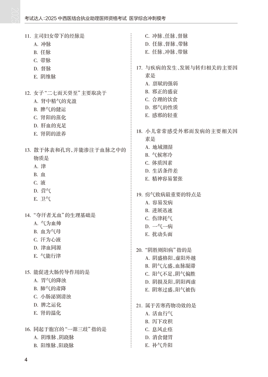 书名:考试达人:2025中西医结合执业助理医师资格考试 医学综合冲刺模考