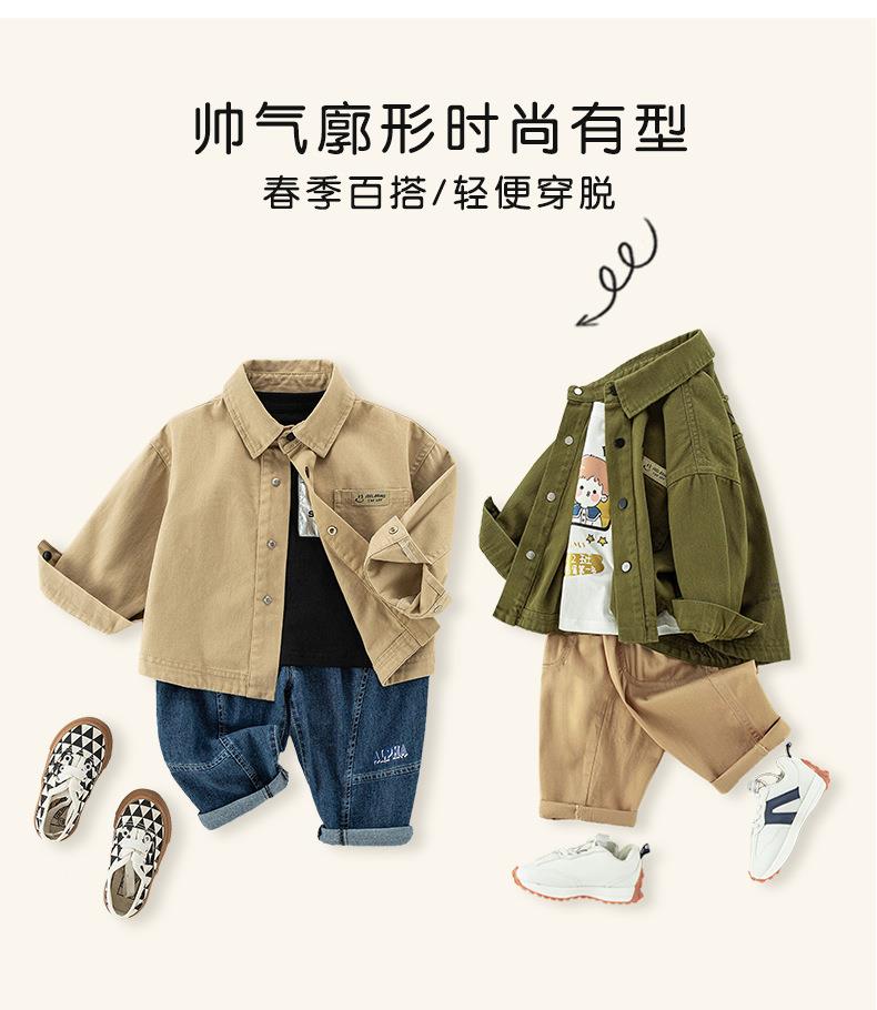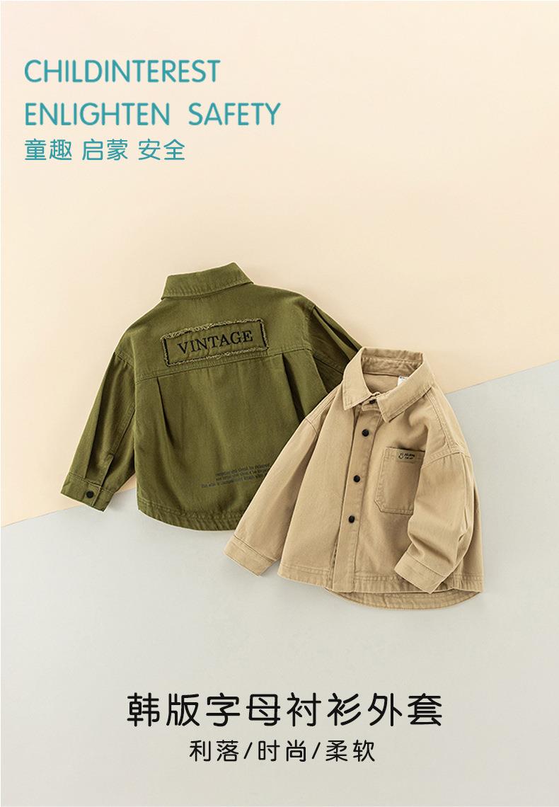 男童衬衫春季宝宝韩版字母上衣小童长袖翻领外套春装儿童纯棉衬衣