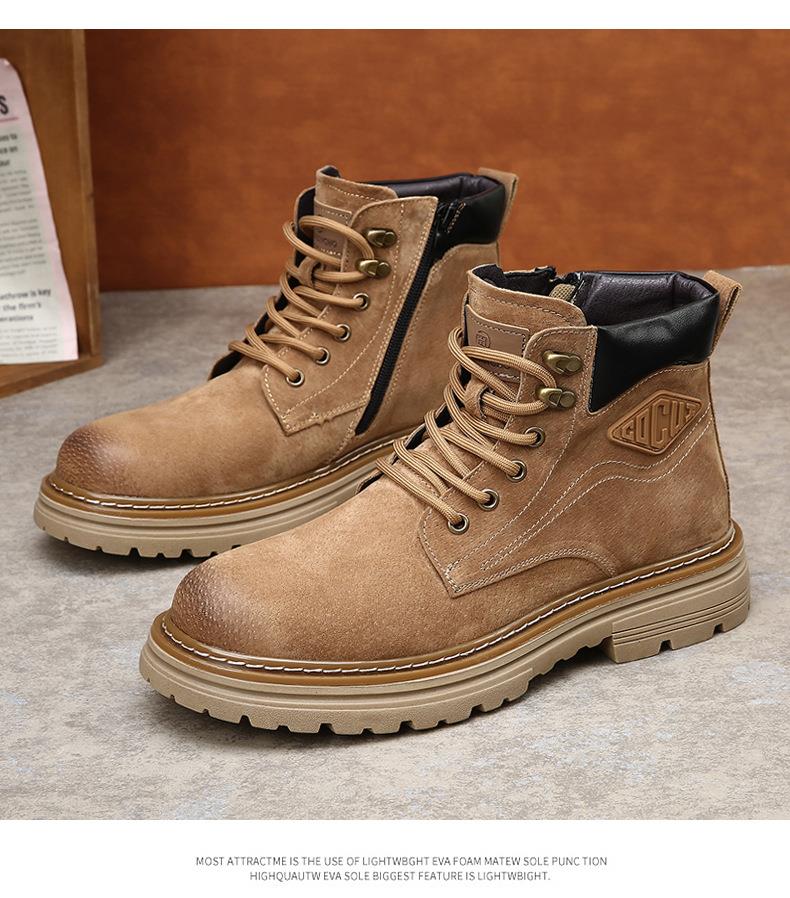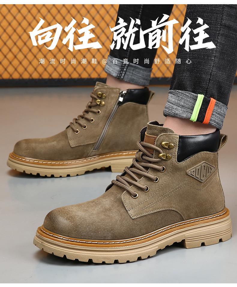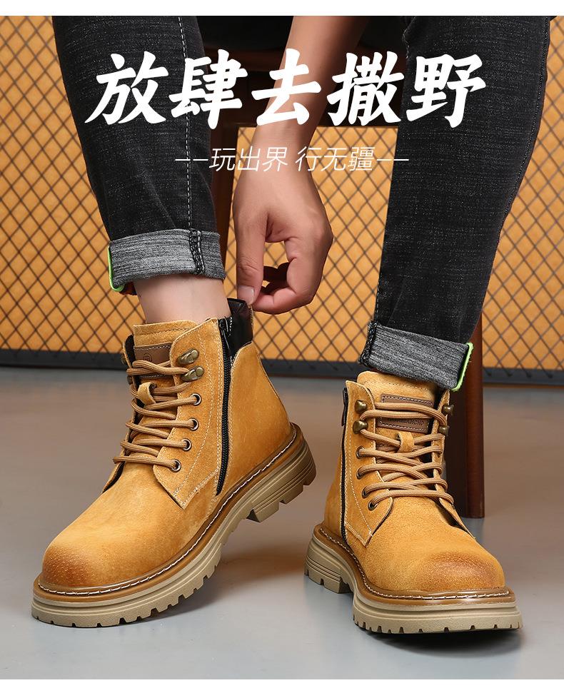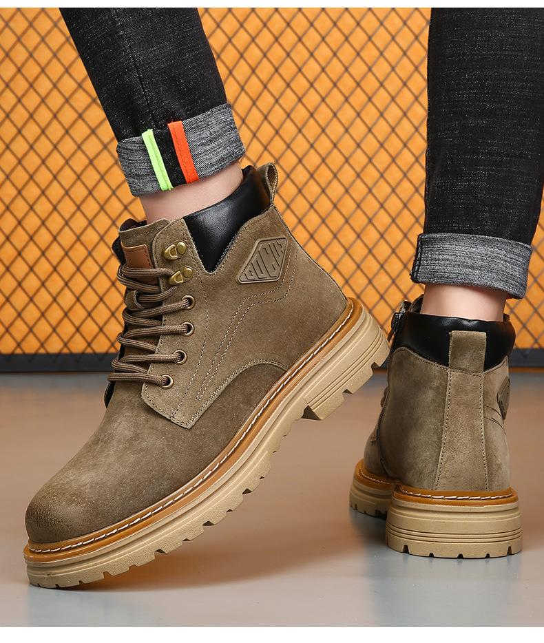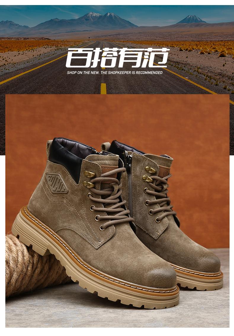 欧洲站复古机车马丁靴男真皮厚底工装靴男士加绒保暖防滑短靴子男