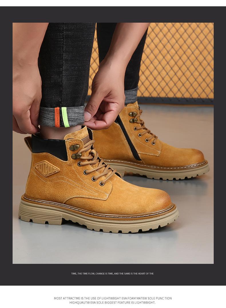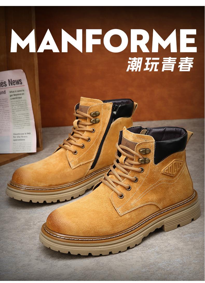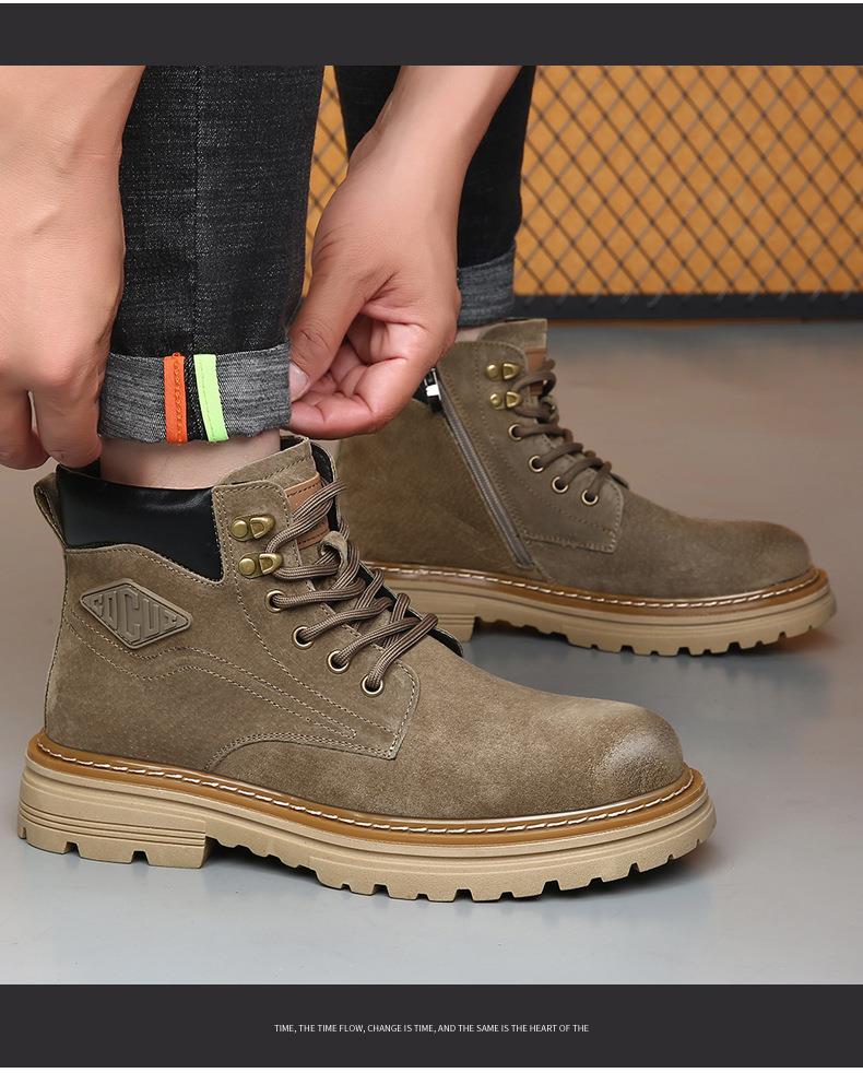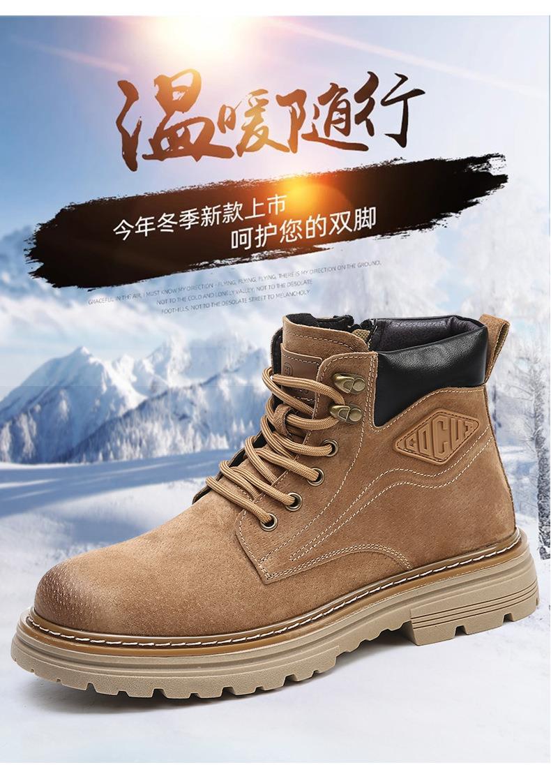 欧洲站复古机车马丁靴男真皮厚底工装靴男士加绒保暖防滑短靴子男