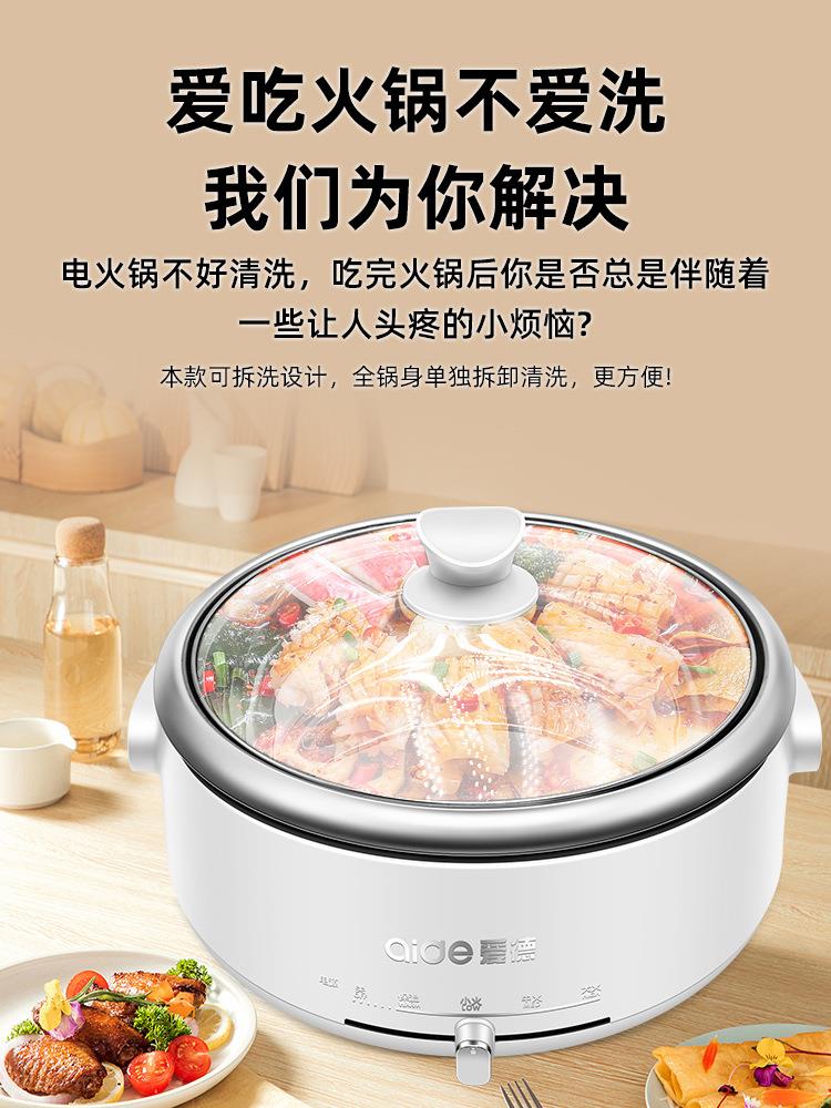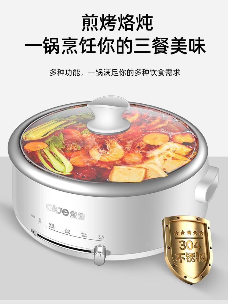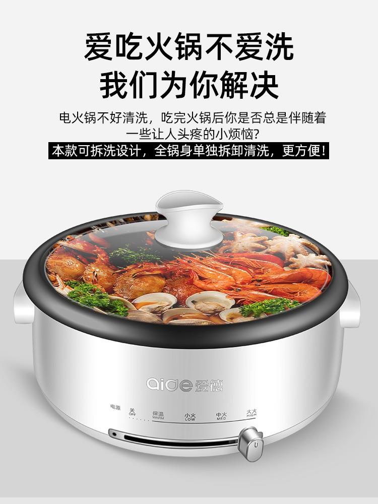 爱德电火锅锅家用分体式多功能304不锈钢内胆电热锅电煮锅3-4-6人