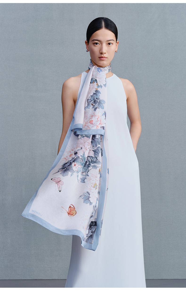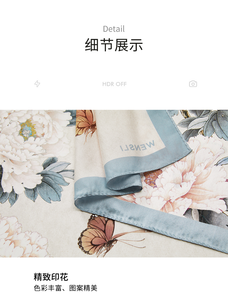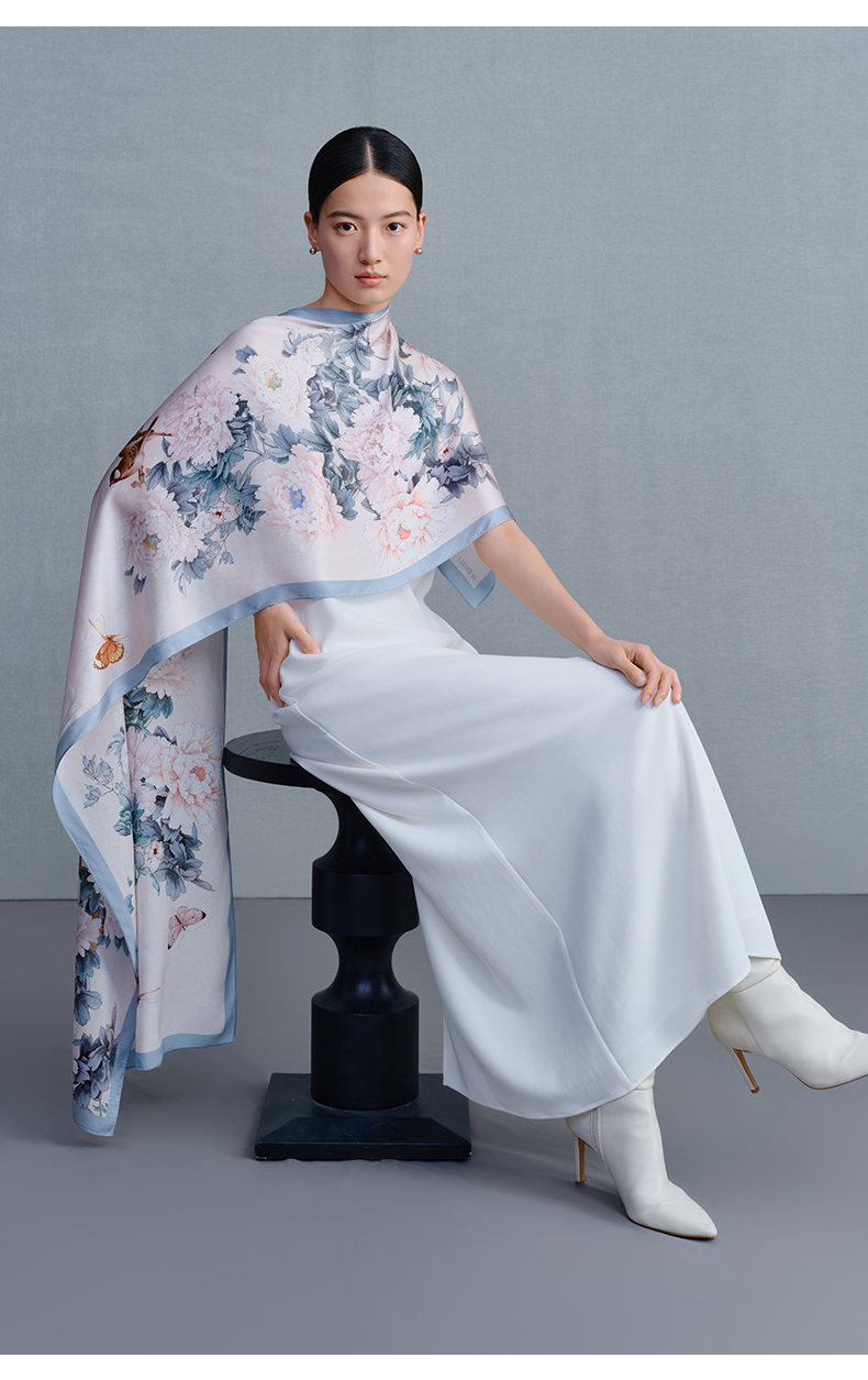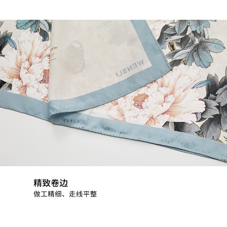 万事利“玉兰赋”63厘米双面印花真丝中方巾