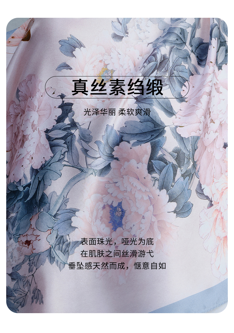 凤凰之家“浪漫不渝”63厘米双面印花真丝中方巾