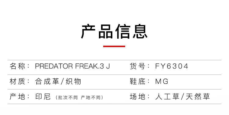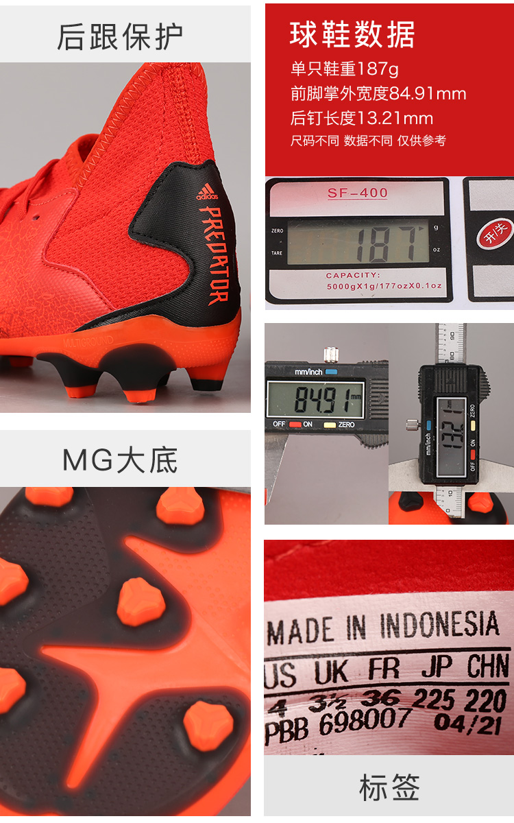 ADIDAS/阿迪达斯 PREDATOR FREAK .3 MG J儿童款猎鹰中端MG短钉足球鞋FY6304