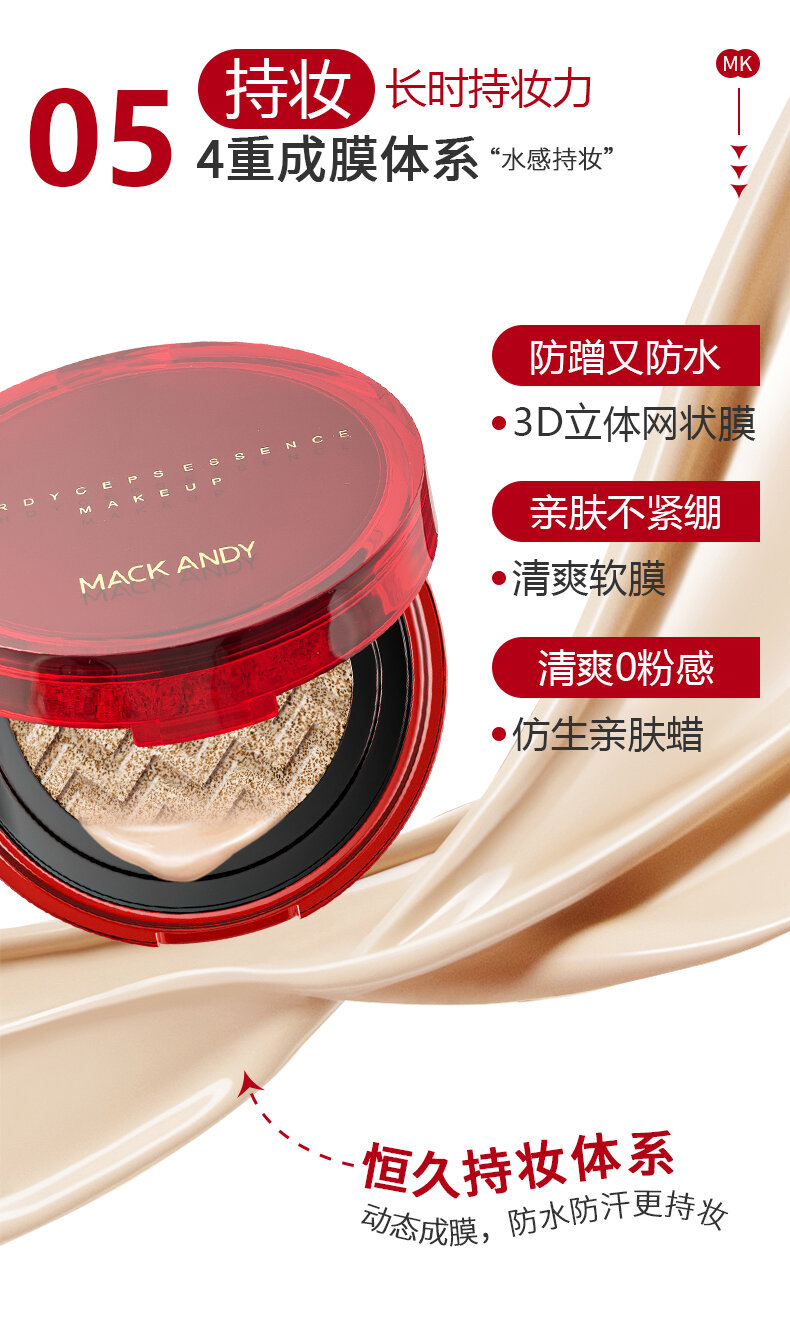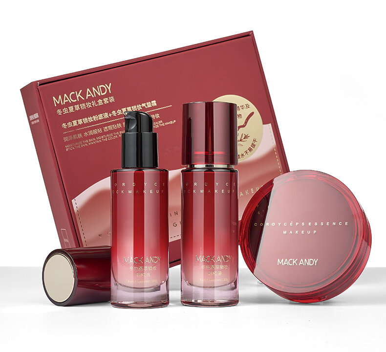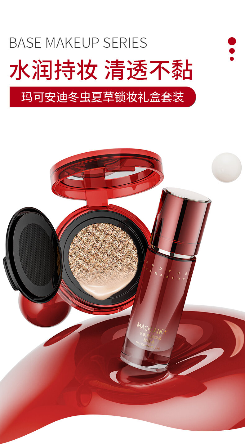 【MACK ANDY--冬虫夏草锁妆粉底液+气垫霜礼盒套装】冬虫夏草精华滋养、保湿分子矩阵锁水、水润持妆/清透不黏/防蹭防水/亲肤不紧绷、多重精华让你轻松拥有好气色~