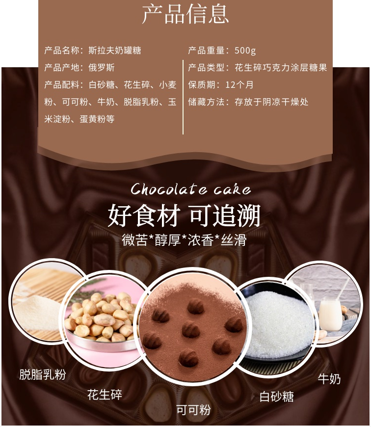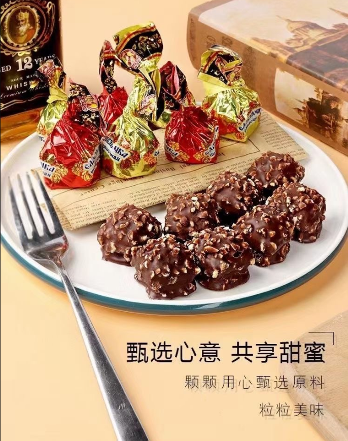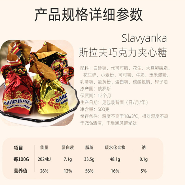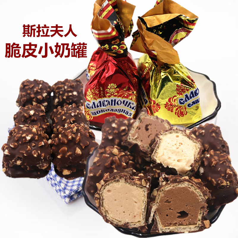 【中欧班列精选】斯拉夫奶罐花生碎夹心牛奶糖果500g俄罗斯进口巧克力喜糖零食年货