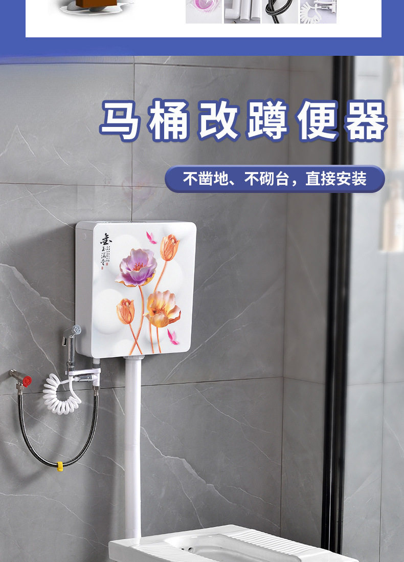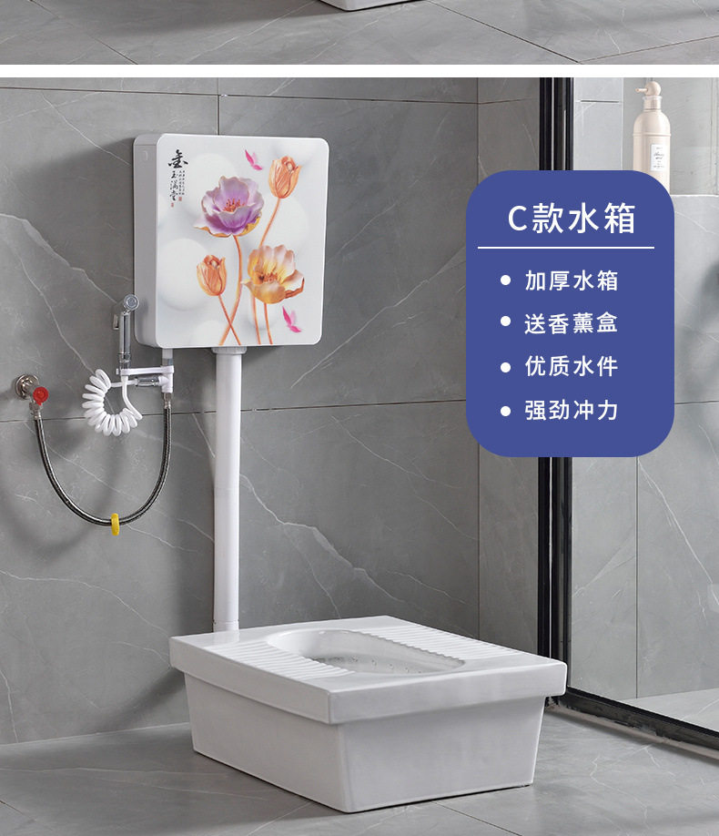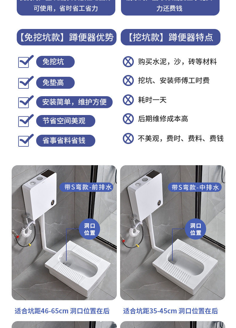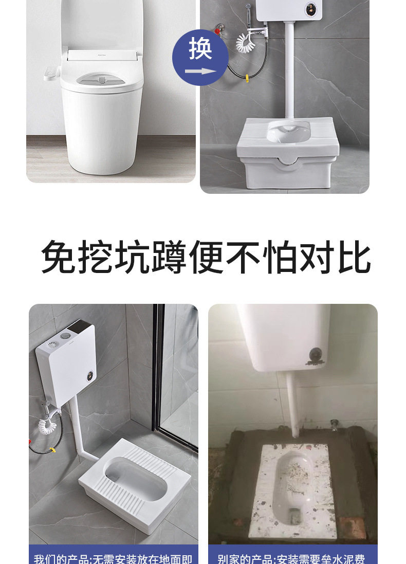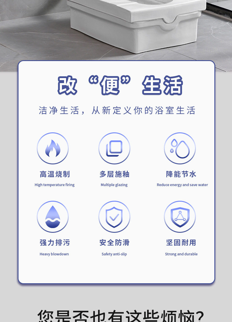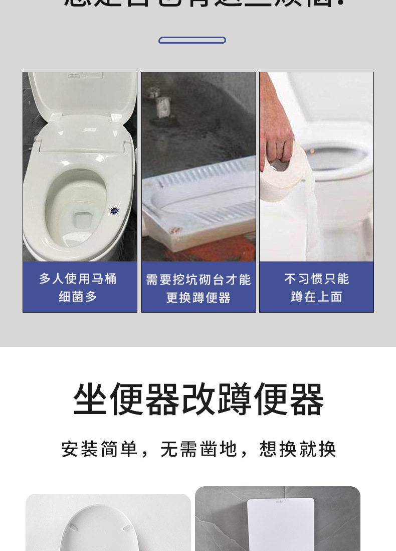 器免不磊台明装蹲坑马桶陶瓷便器蹲改一体家用便卫生间挖坑整套蹲