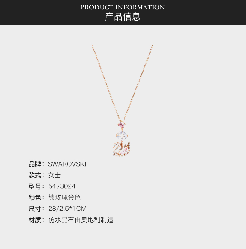 【一般贸易】奥地利施华洛世奇SWAROVSKI粉色天鹅镀玫瑰金色项链5473024