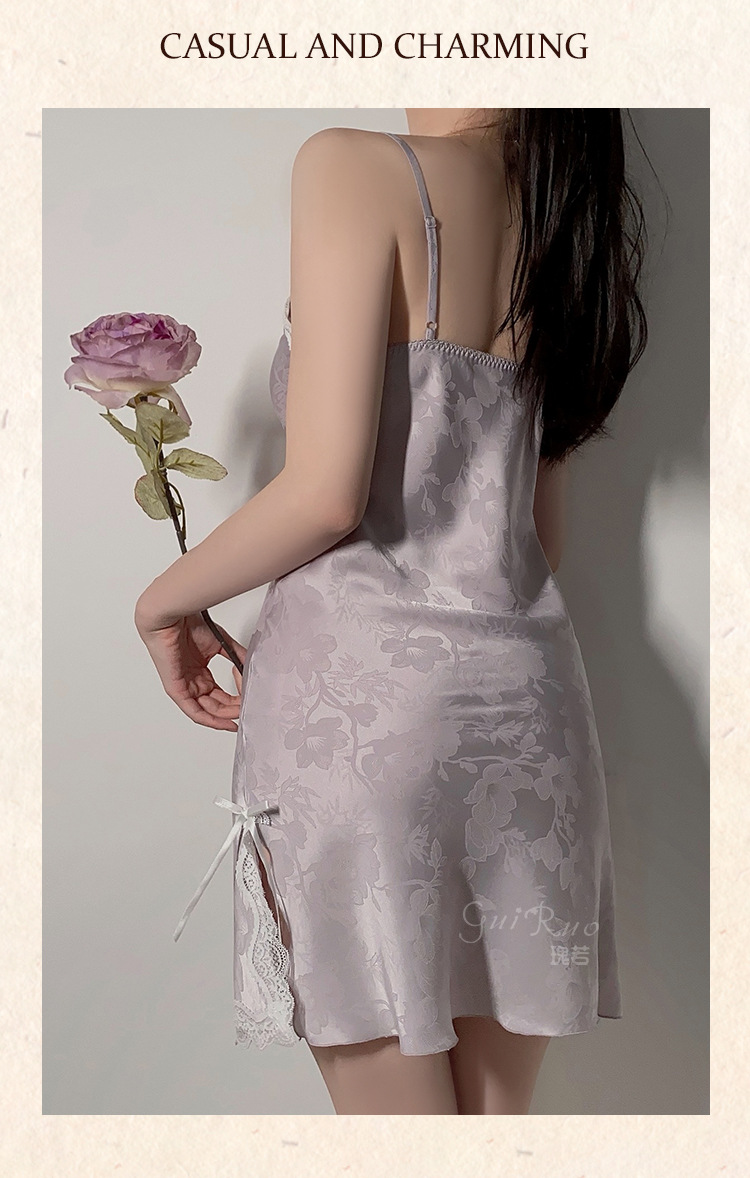 【YW】无忧购深V聚拢加胸垫甜美提花缎面睡裙4906(截单后7天发货)