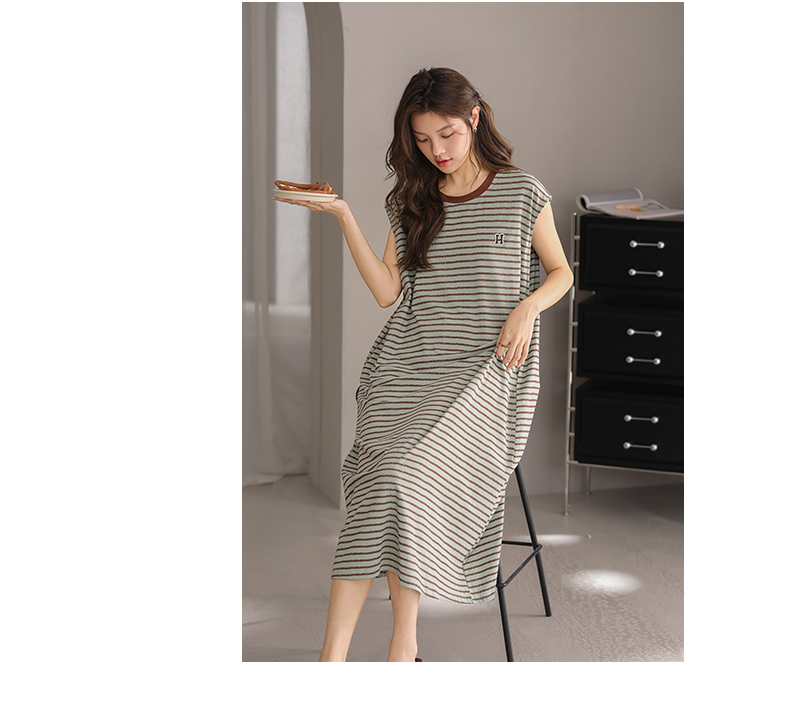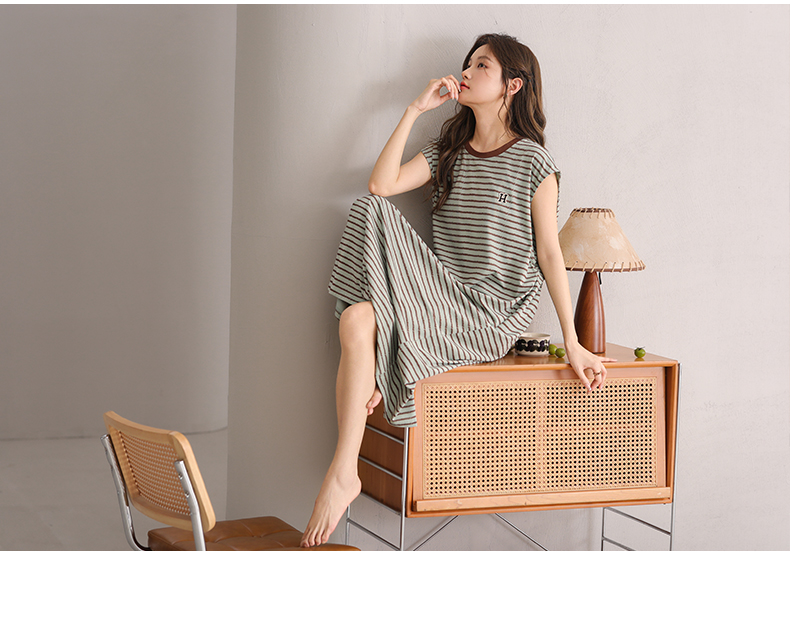 可人儿小众设计新款泡泡绵女士睡衣夏季短袖少女睡裙可外穿家居服